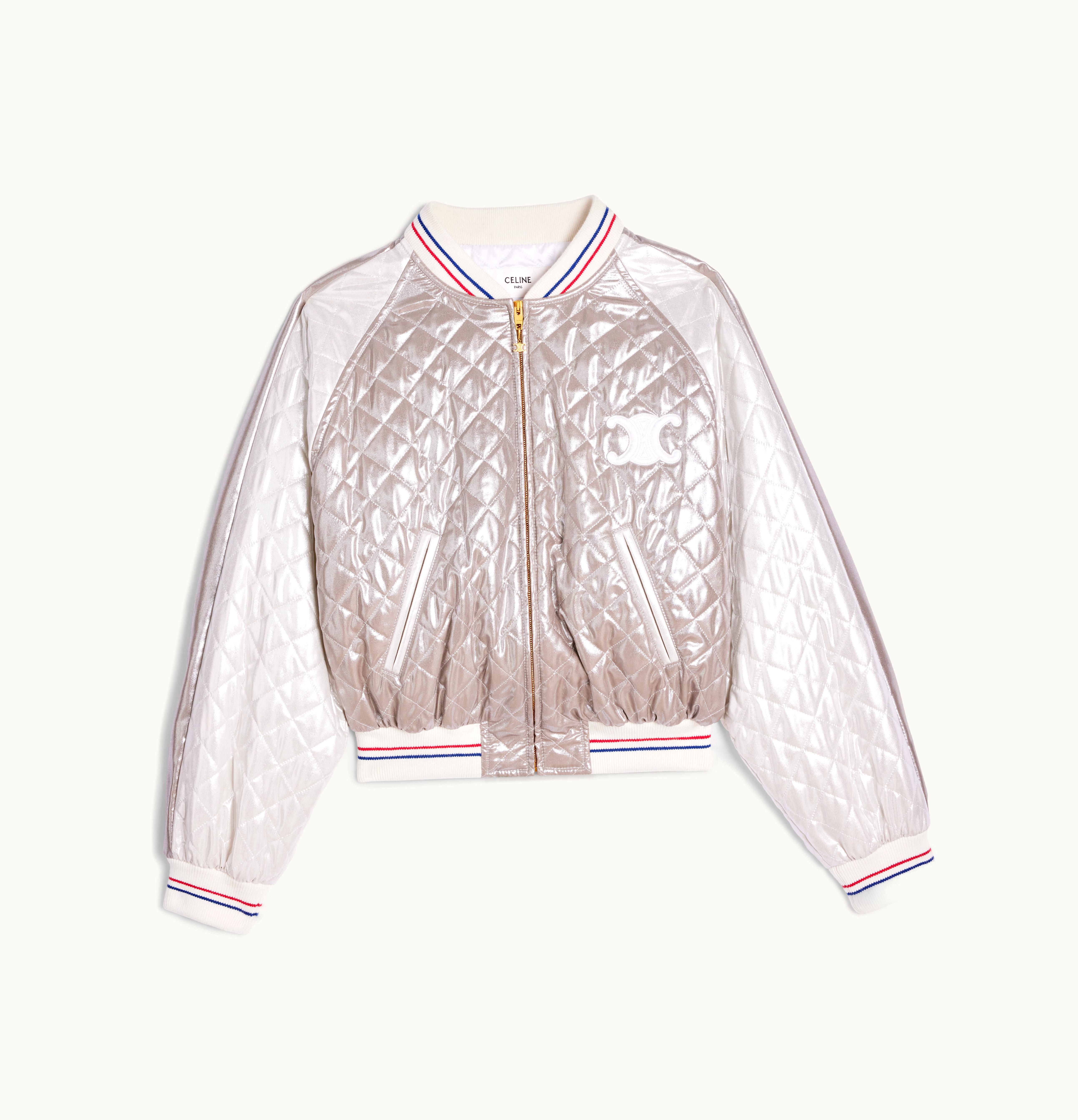 Celine Casaque Blouson Jacket In Laminated Silk Argent | GLINT