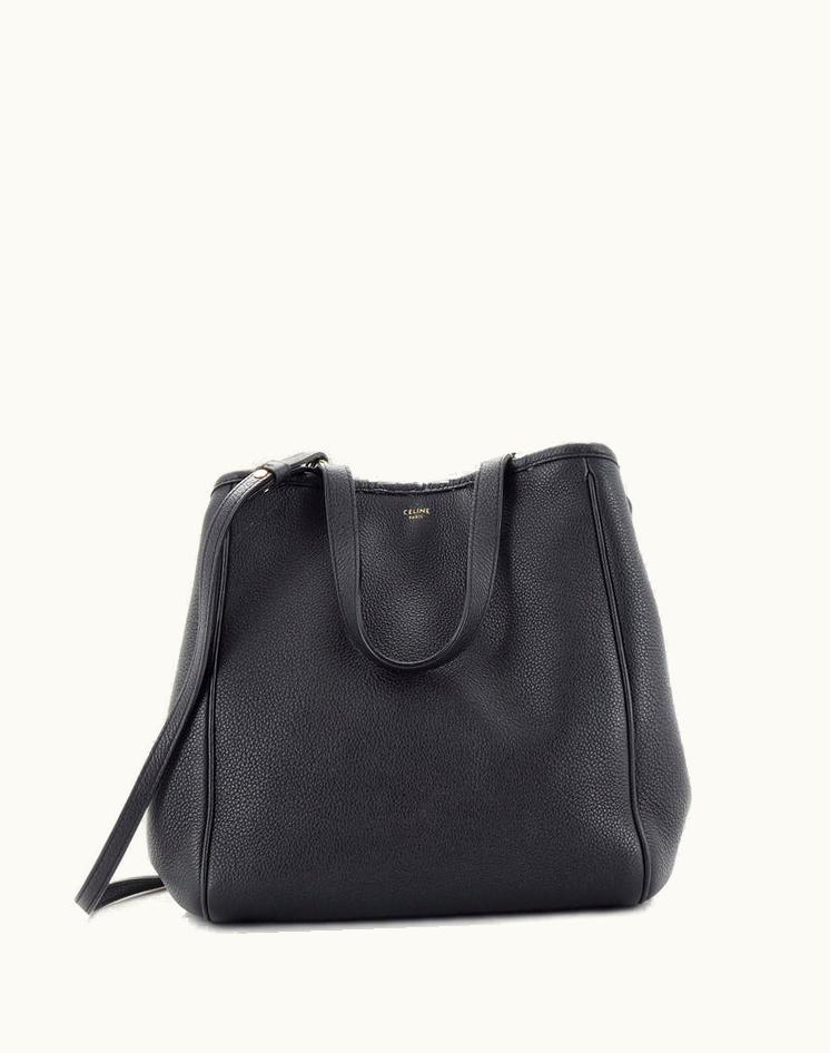 Celine Folded Cabas Leather Small Tote Black | GLINT