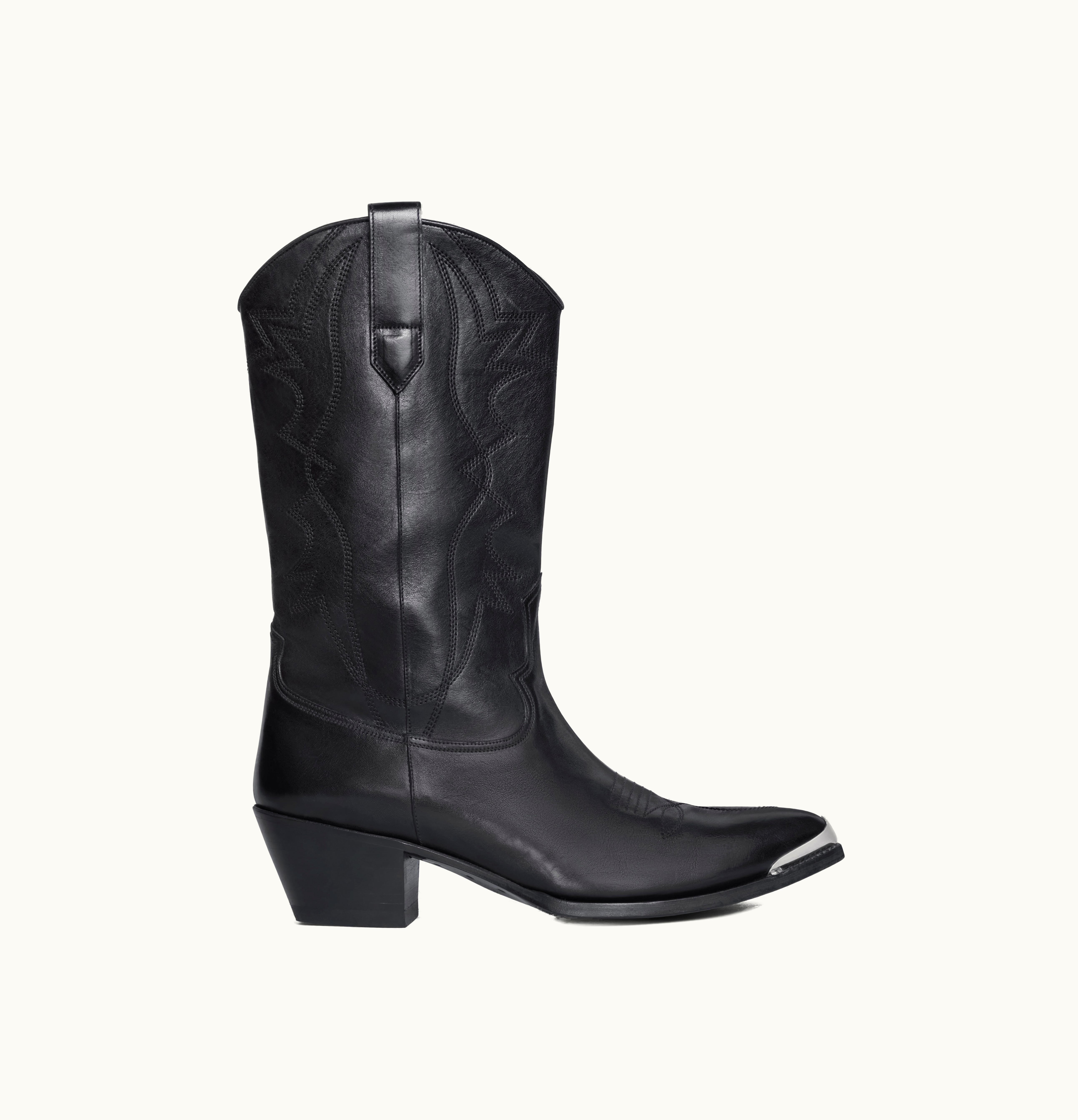 Celine High Western Boots With Metal Toe In Calfskin Black | GLINT