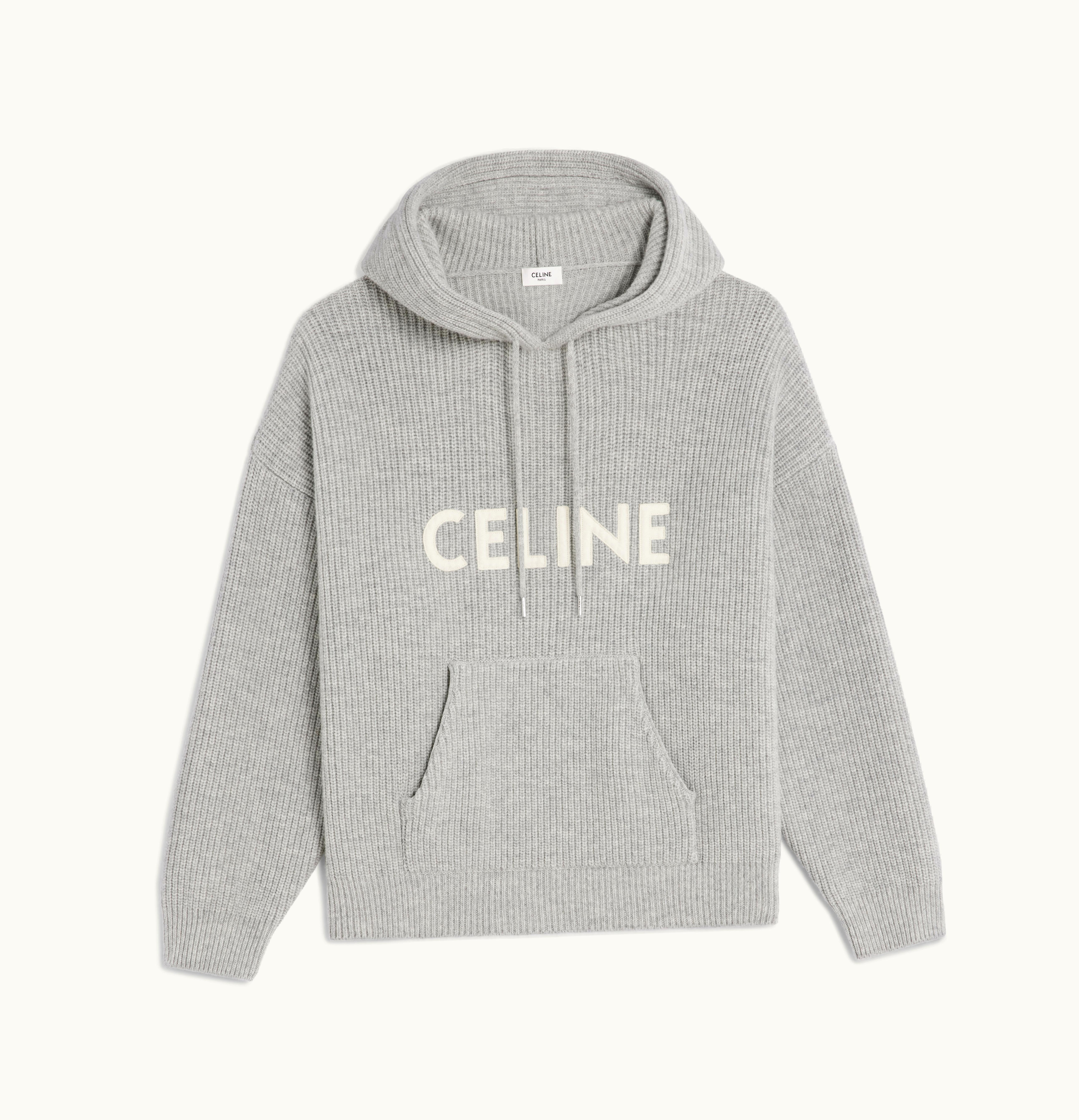 Celine Hooded Sweater In Ribbed Wool Light Grey | GLINT