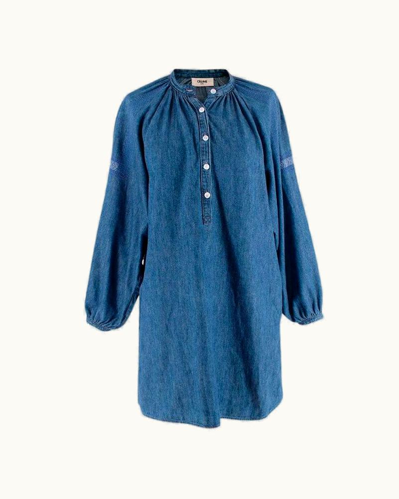 Celine Indigo Denim Embroidered Peasant Tunic | GLINT