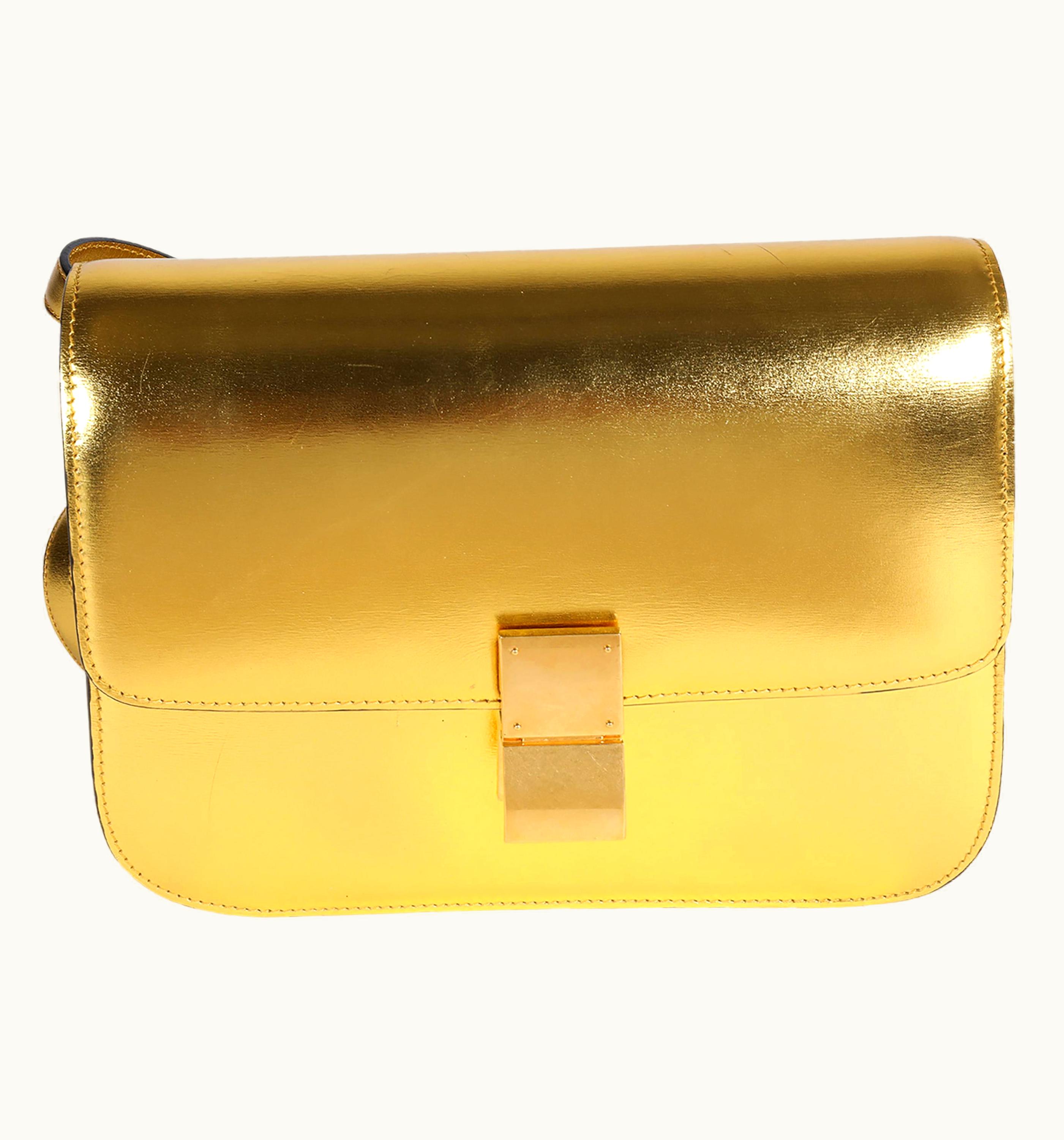 Celine Metallic Gold Calfskin Medium Box Bag | GLINT