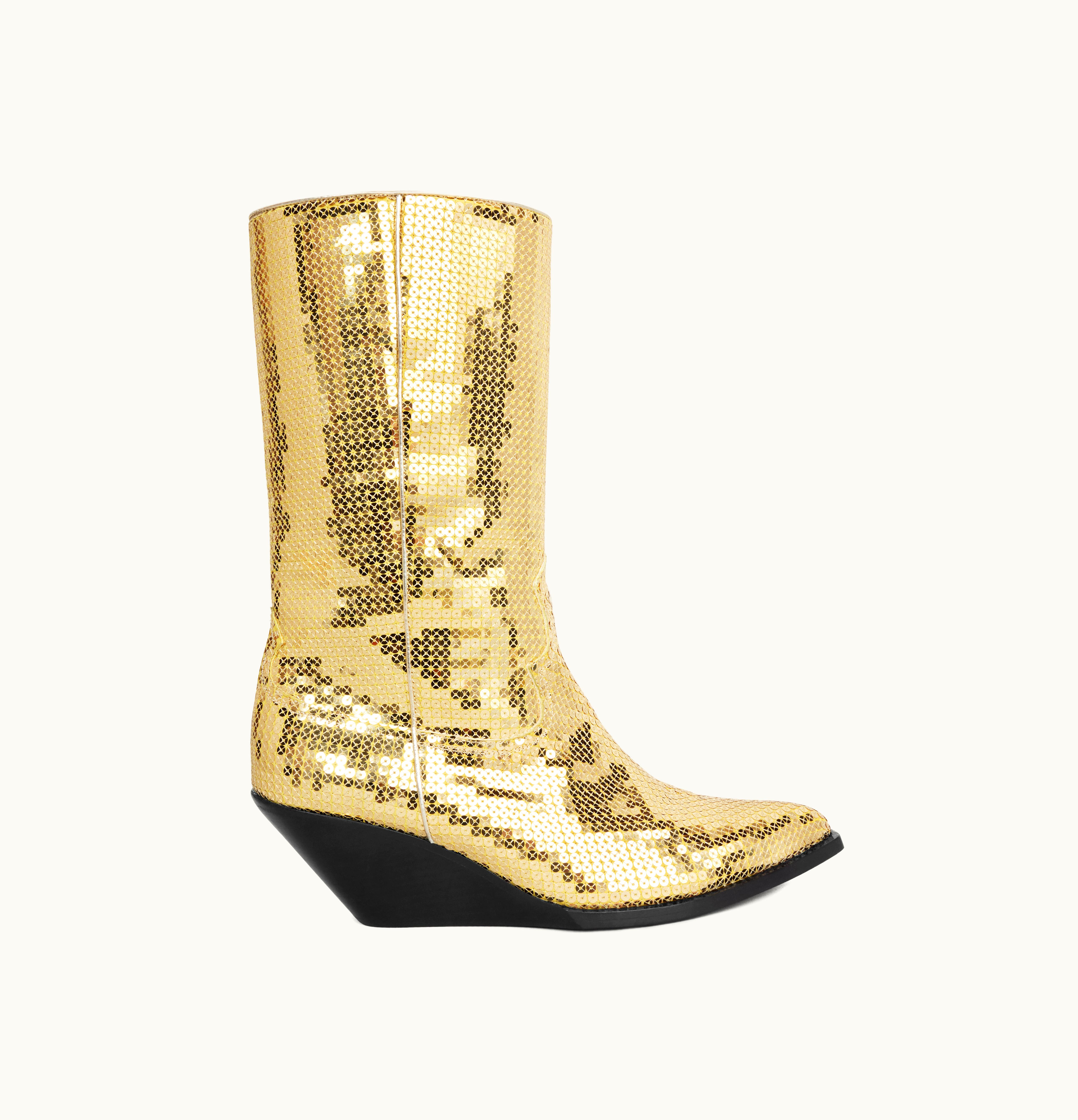 Celine Moon High Boots In Sequins Gold | GLINT