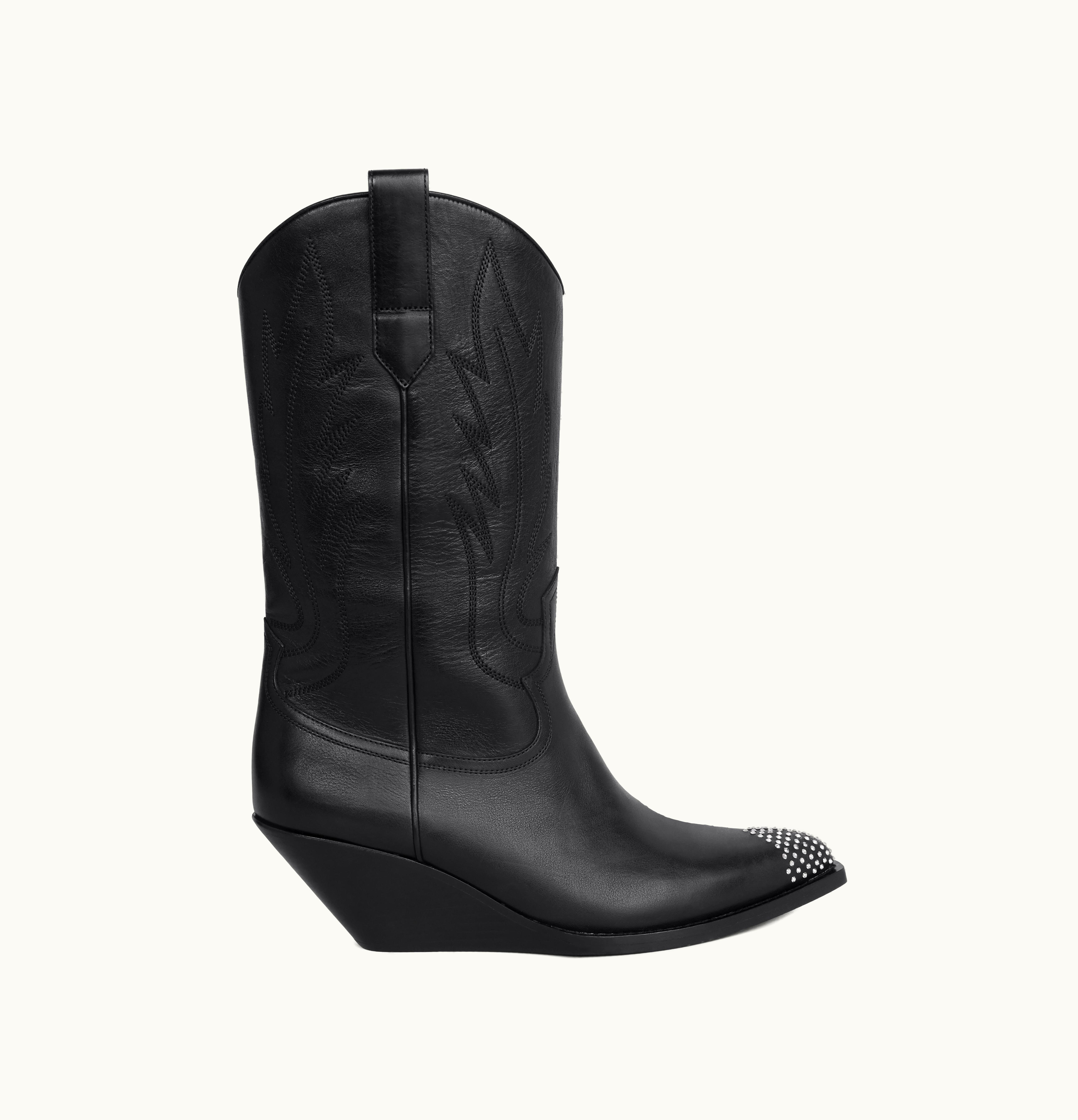Celine Moon High Boots With Strassed Toe Cap In Calfskin Black | GLINT