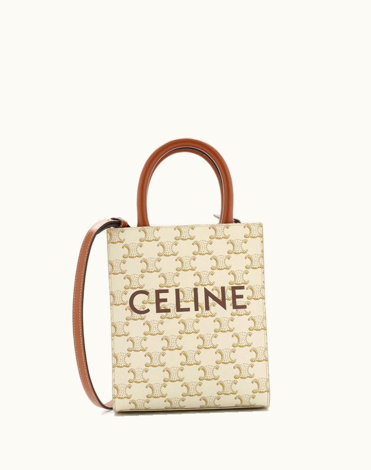 Celine Triomphe Coated Canvas Mini Vertical Cabas Tote in Neutral | GLINT