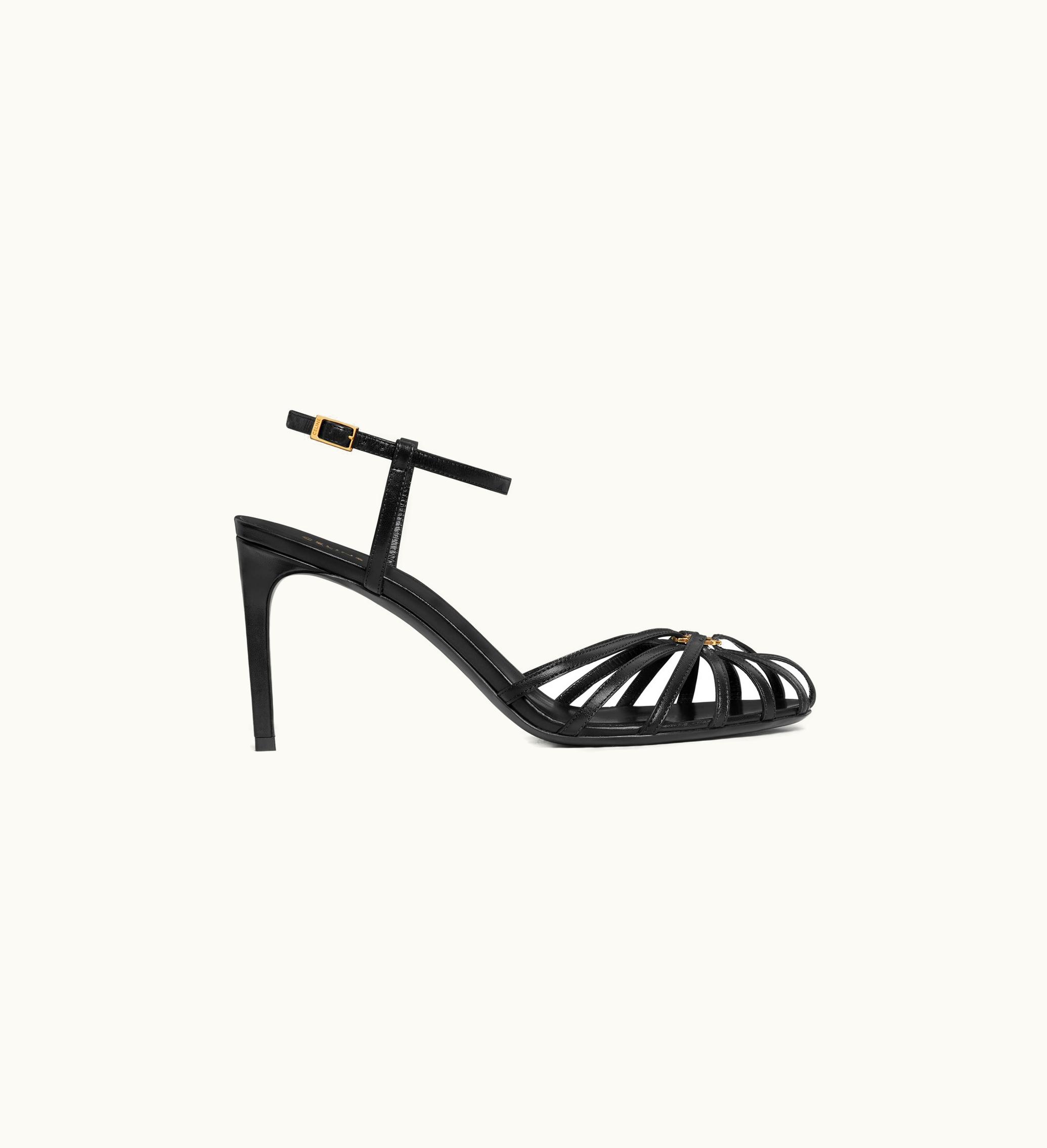 Celine Triomphe Sandal In Lambskin - Black Black | GLINT