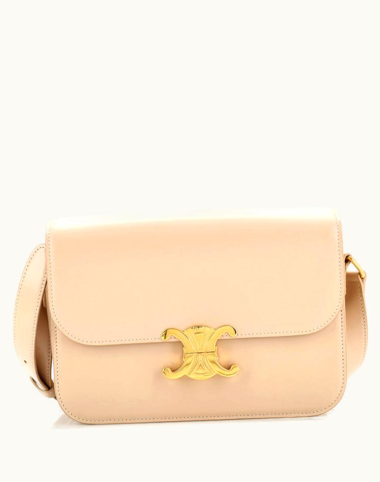 Celine Triomphe Shoulder Bag Smooth Calfskin Medium Neutral Gold | GLINT