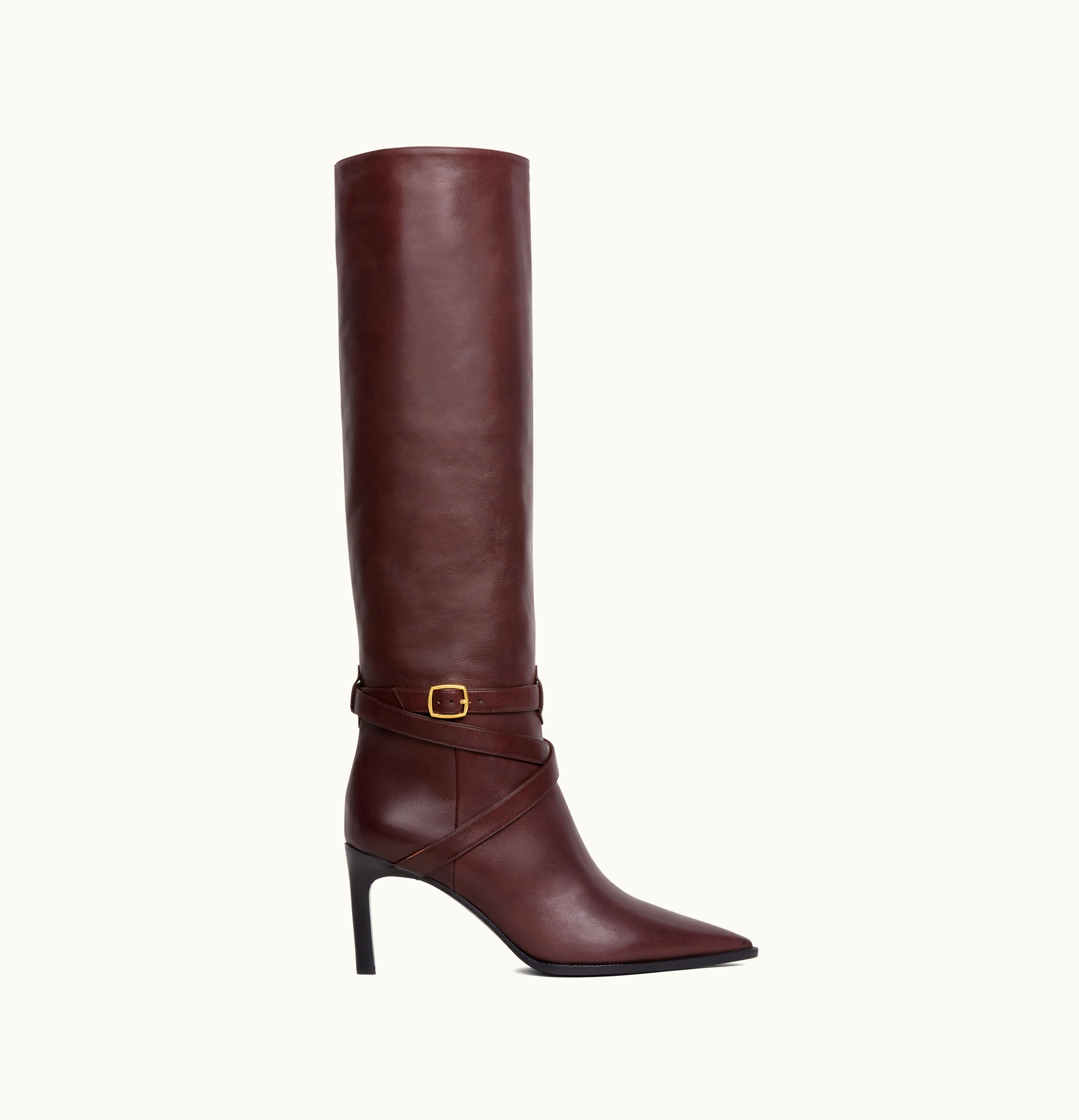 Celine Verneuil High Boot In Calfskin Dark Burgundy | GLINT