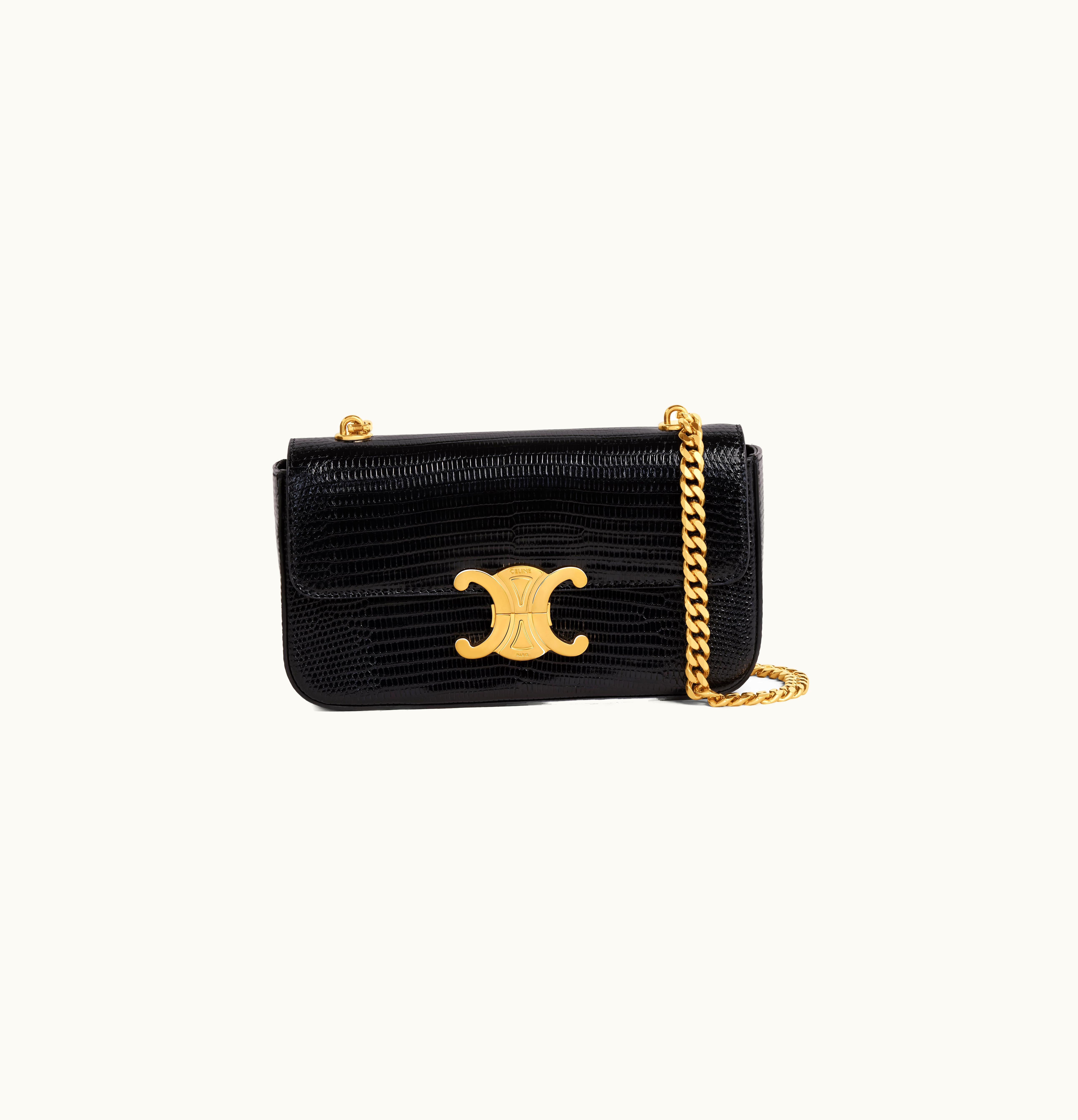 Celine Chain Shoulder Bag Triomphe In Lizard Black | GLINT