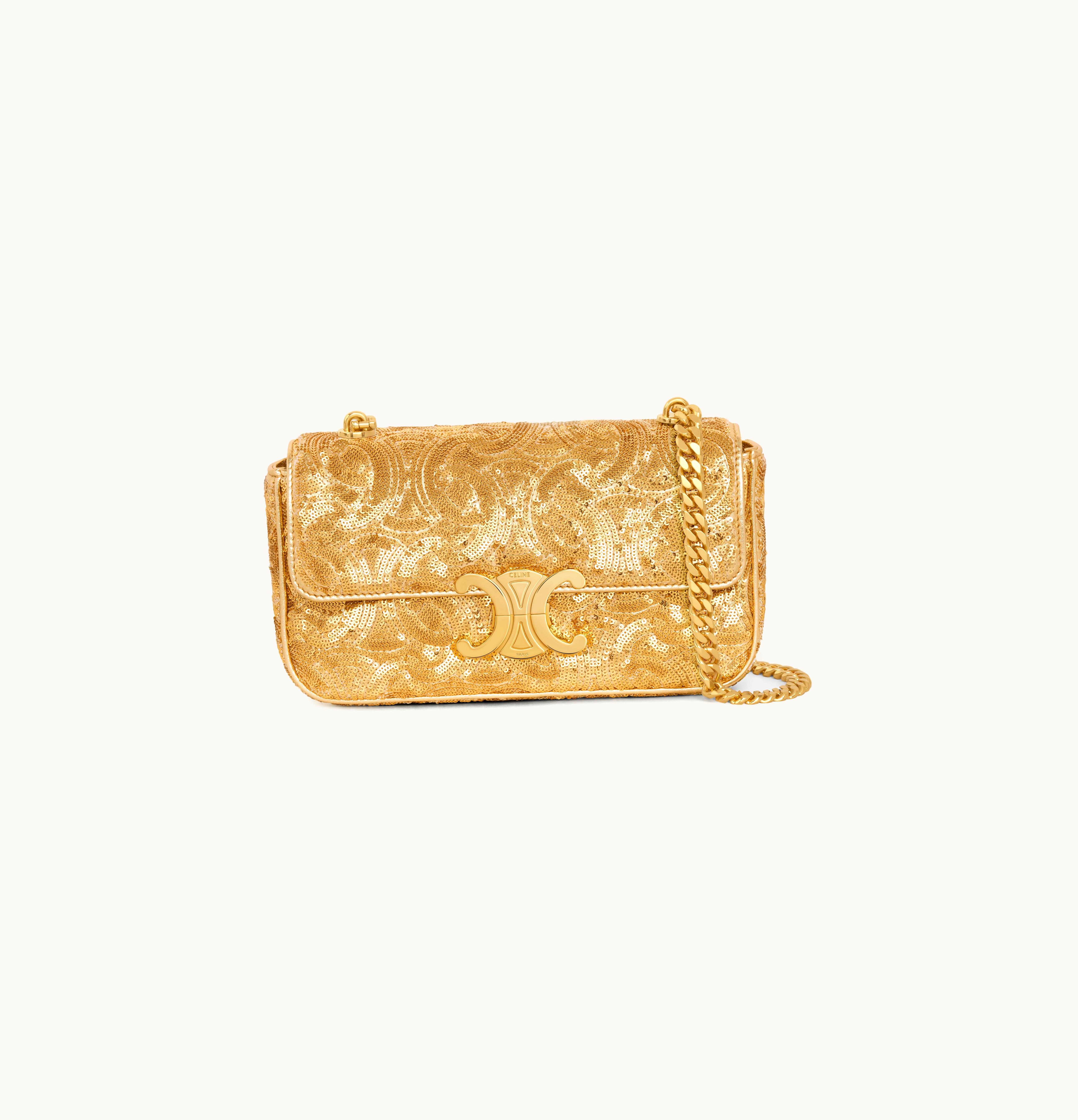 Celine Chain Shoulder Bag Triomphe In Triomphe Quilted Sequins Gold | GLINT