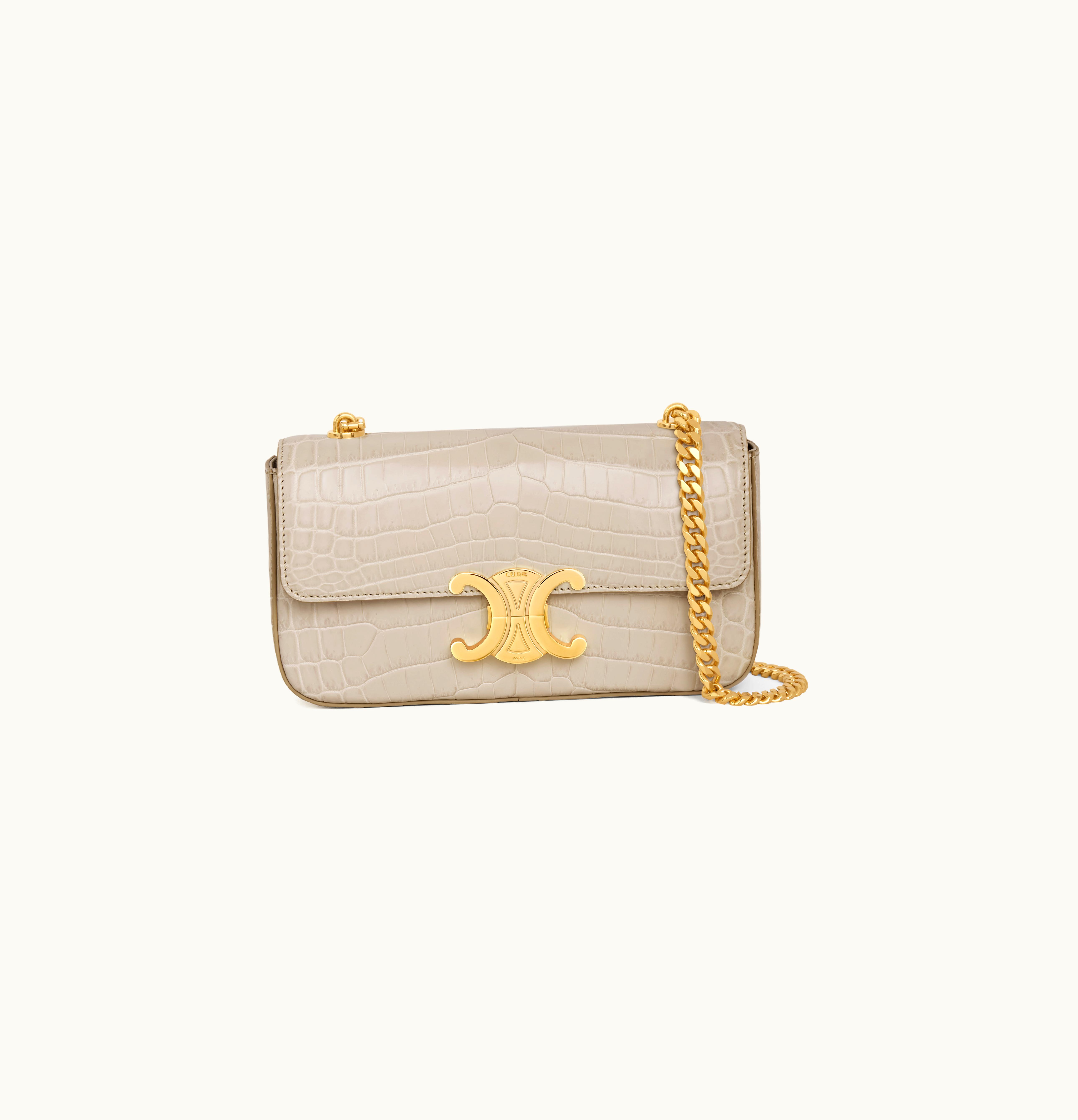 Celine Chain Shoulder Bag Triomphe In Crocodile Trench | GLINT