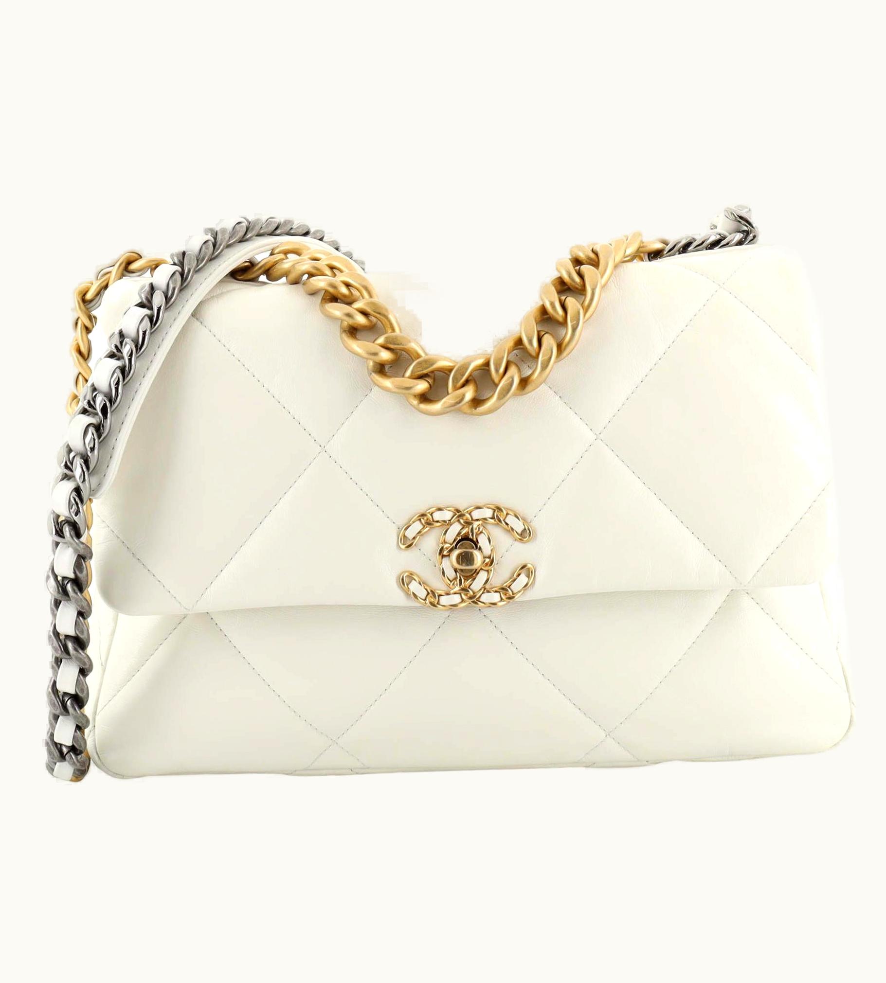 Chanel 19 Flap Bag Quilted Leather Large Neutral | GLINT