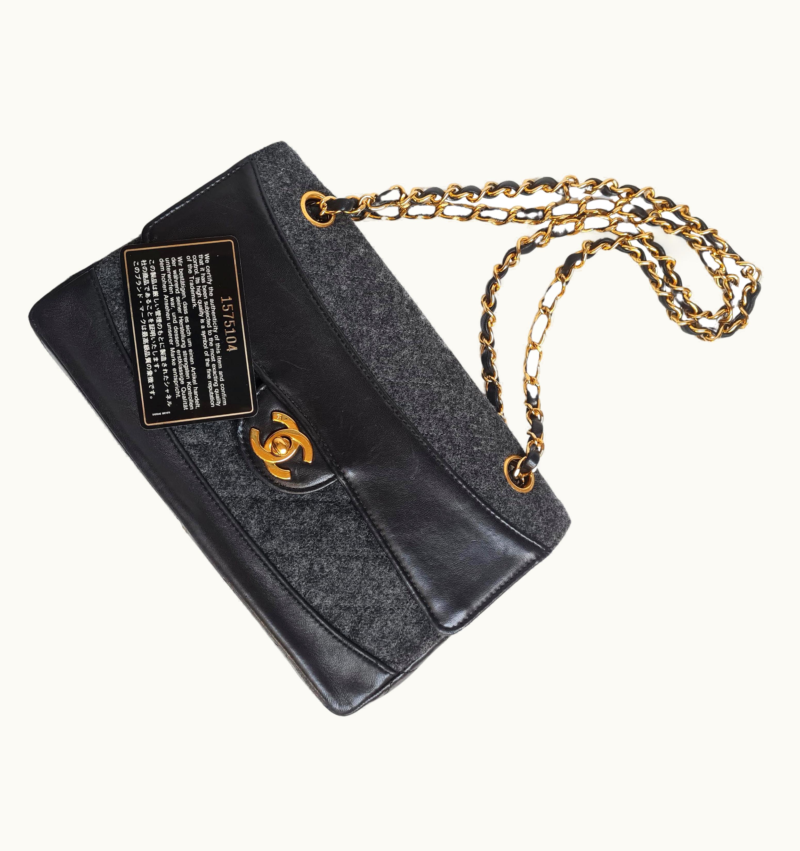 Chanel 1990s Grey Wool Leather Flap Bag | GLINT