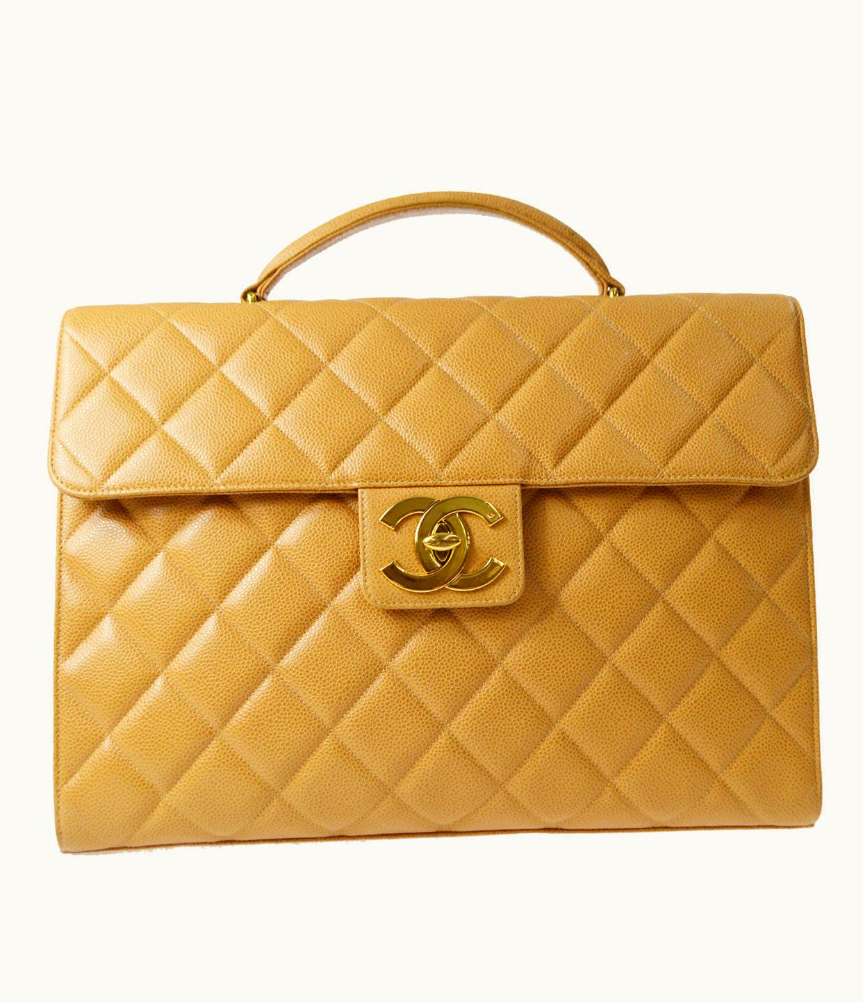 Chanel 1991-1994 Briefcase Beige Caviar Skin 76943 | GLINT