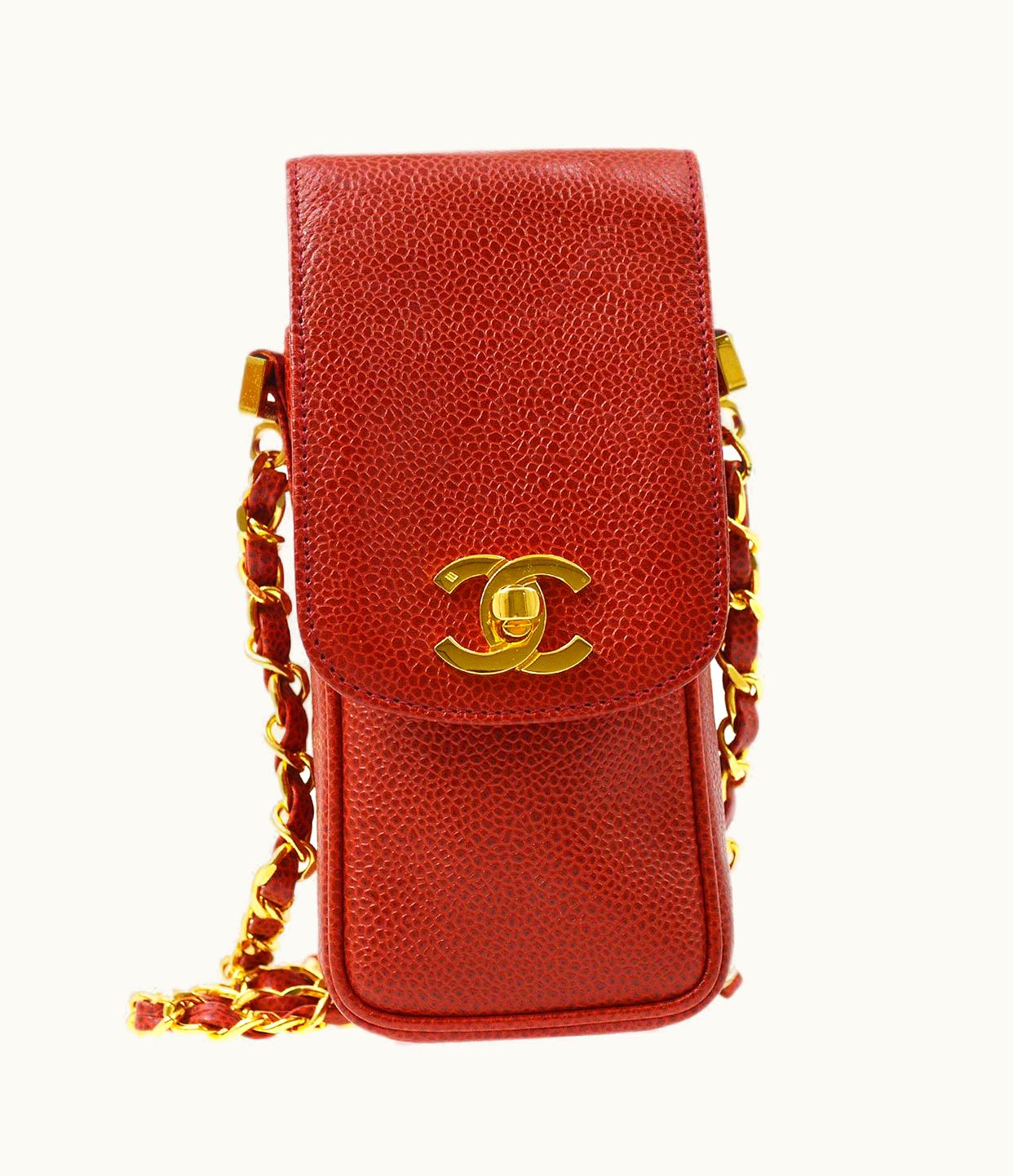 Chanel 1994-1996 Red Caviar Phone Case Ao28621 | GLINT