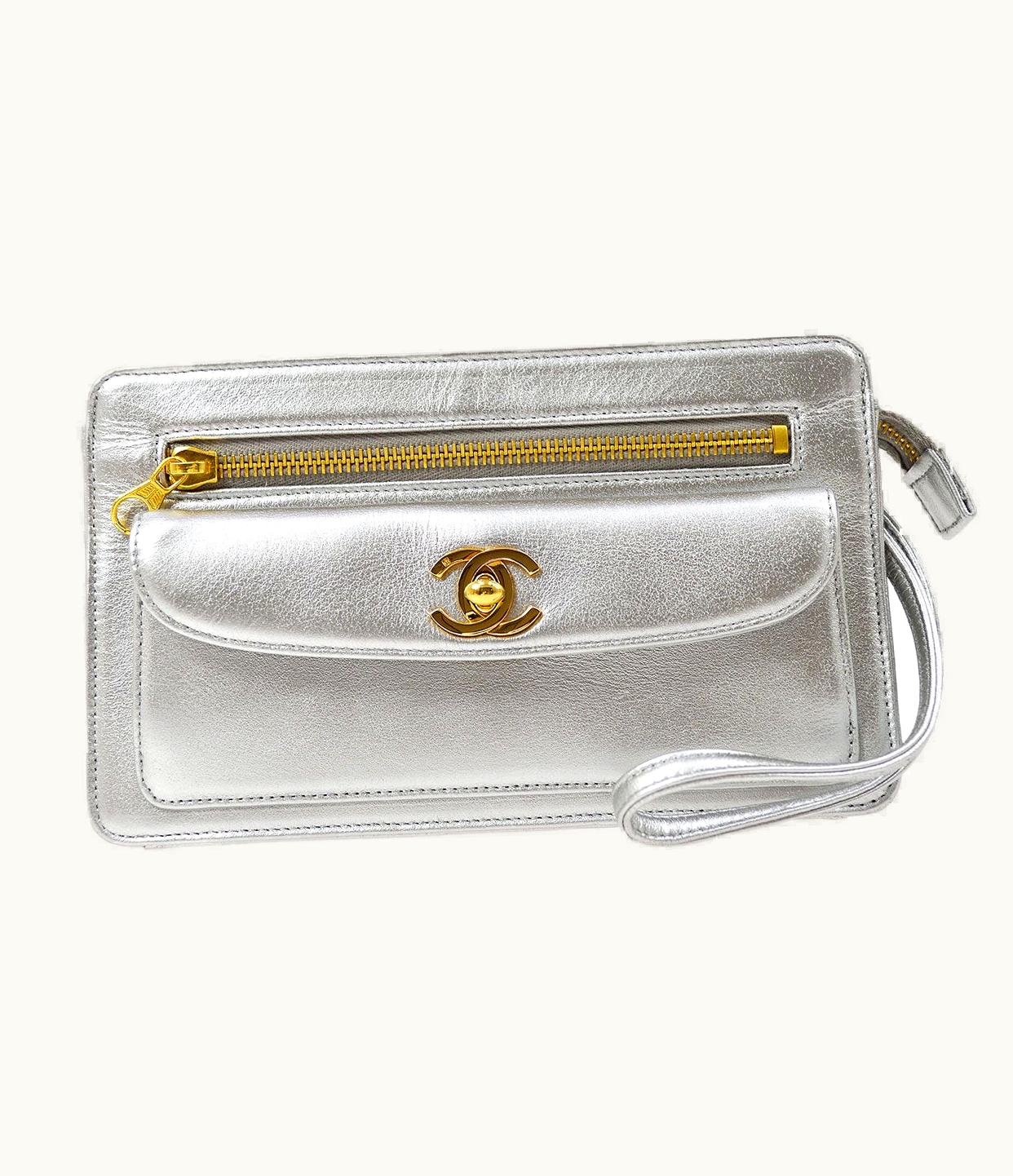 Chanel 1996-1997 Clutch Hand Bag Silver Ao26611 | GLINT
