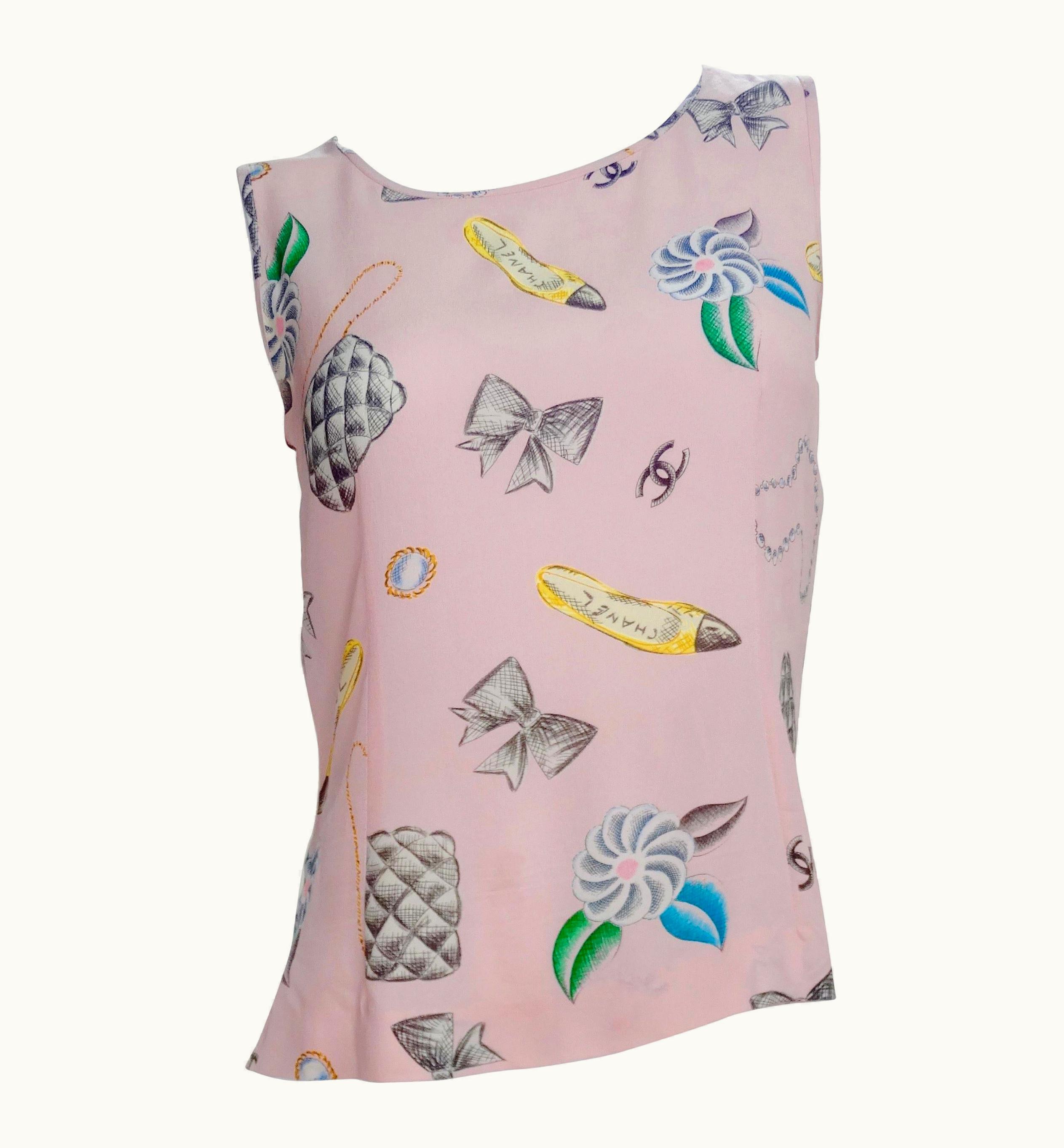 Chanel 1996 Novelty Print Silk Blouse | GLINT