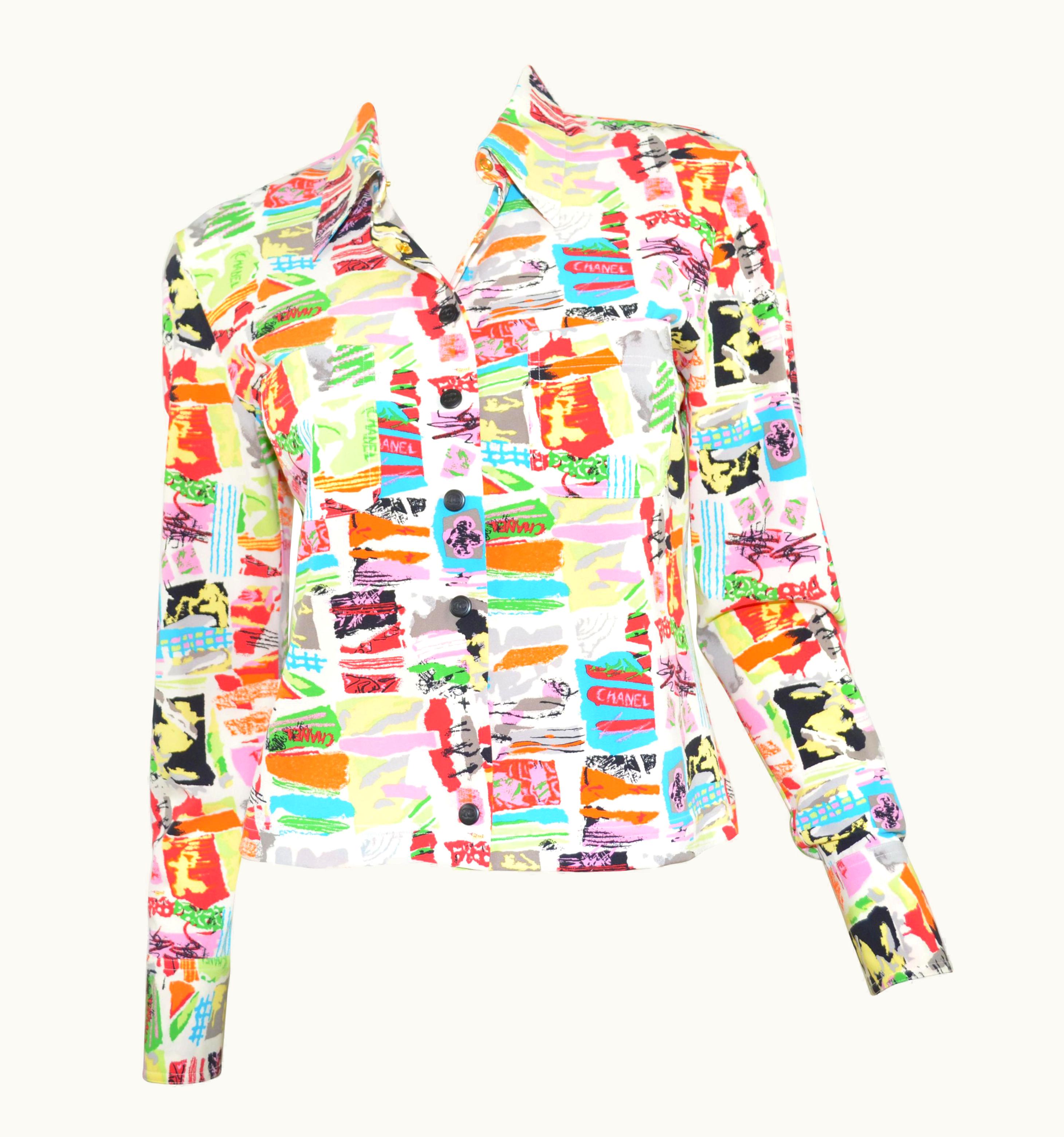 Chanel 1997 C Graffiti Print Silk Blouse | GLINT