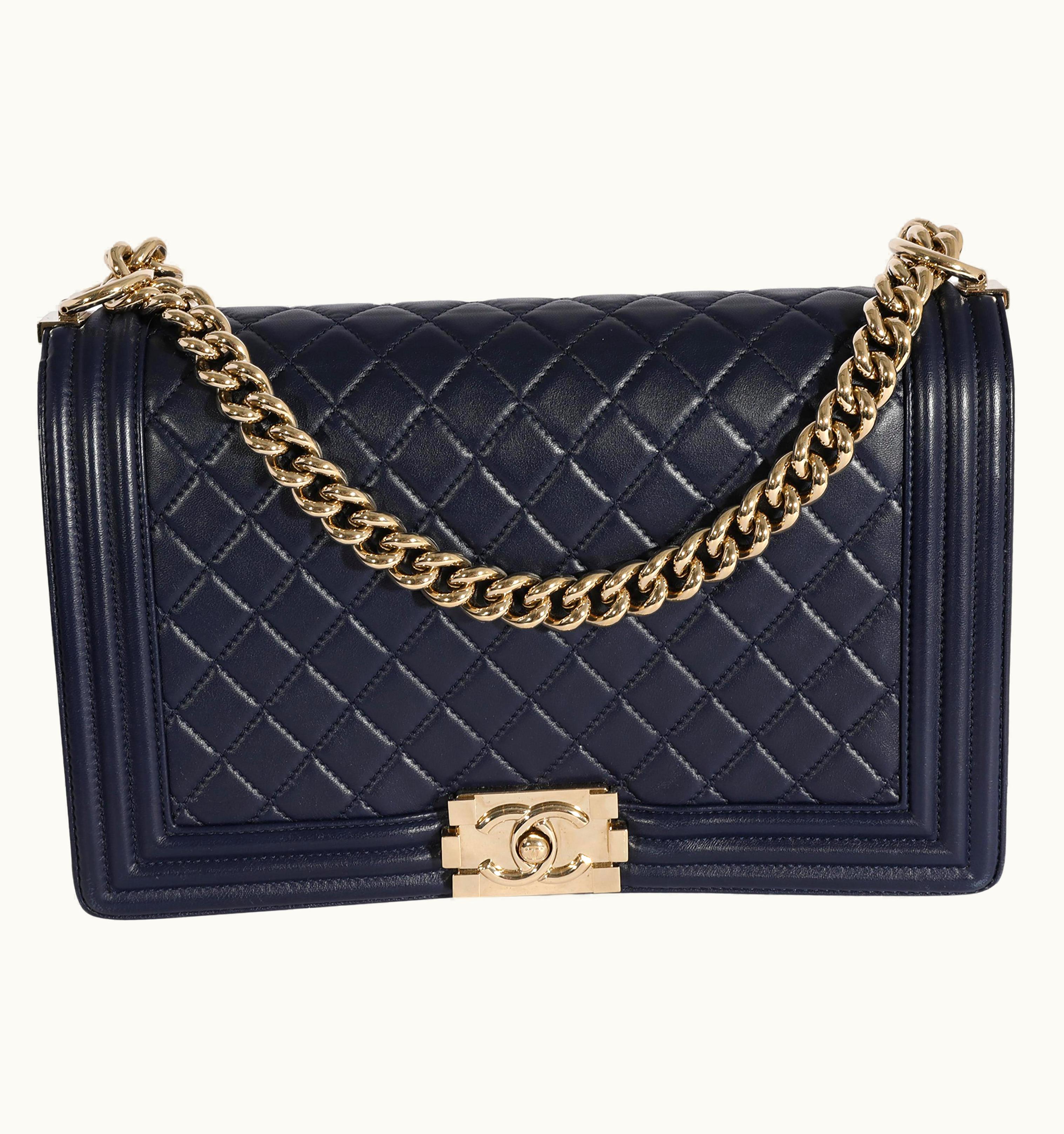 Chanel 2015-2016 Large Boy Navy Quilted Lambskin Crossbody Bag | GLINT