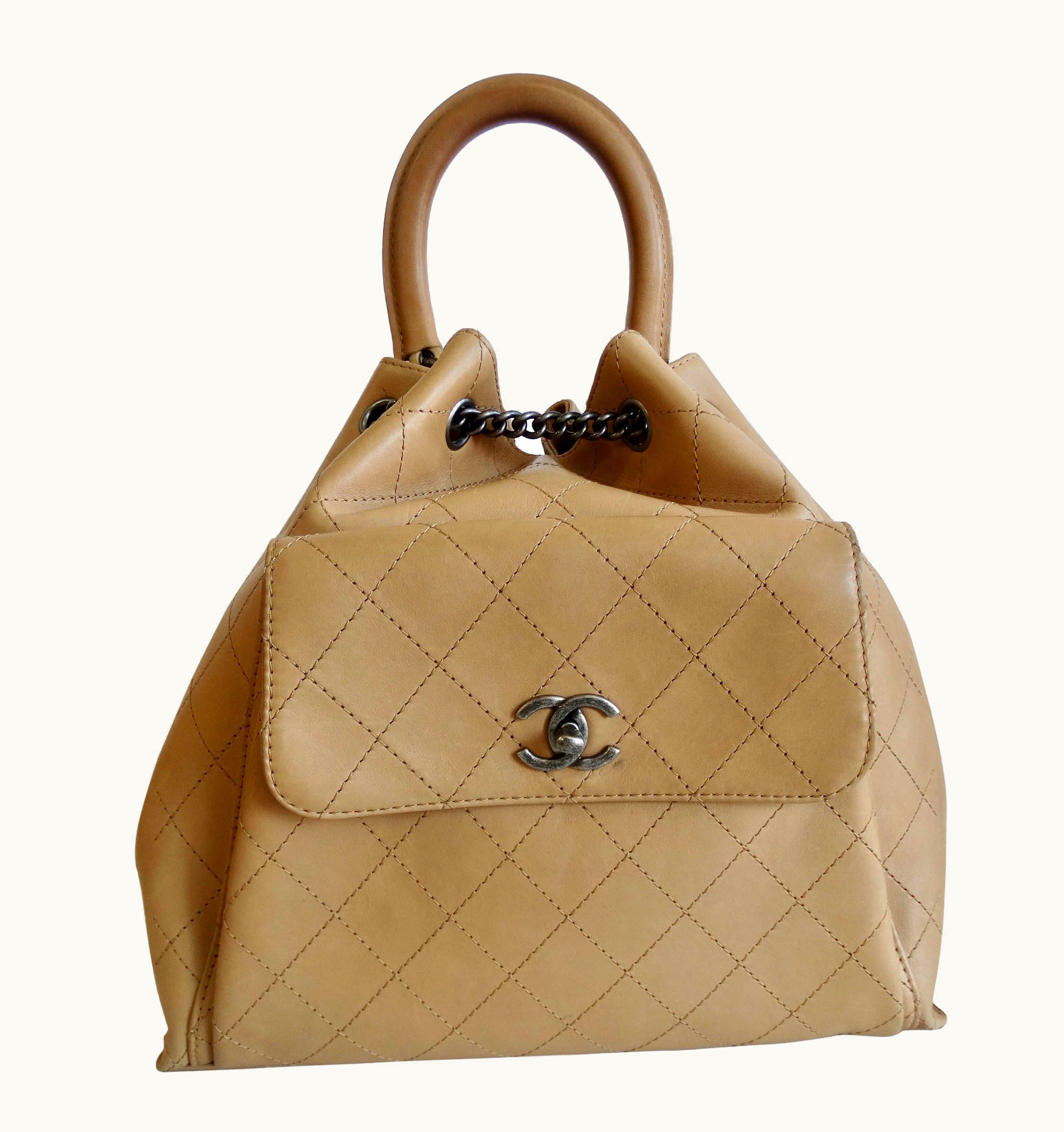 Chanel 2016 Tan Quilted Drawstring Backpack | GLINT