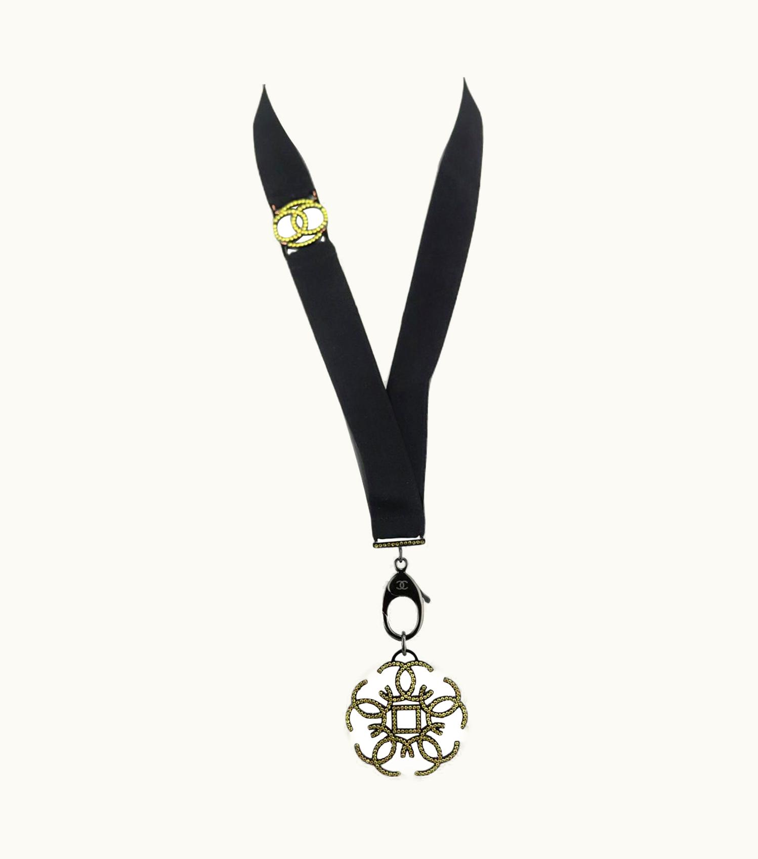 Chanel 2017 Crystal Embellished Medalion Ribbon Necklace UZ0613707 | GLINT