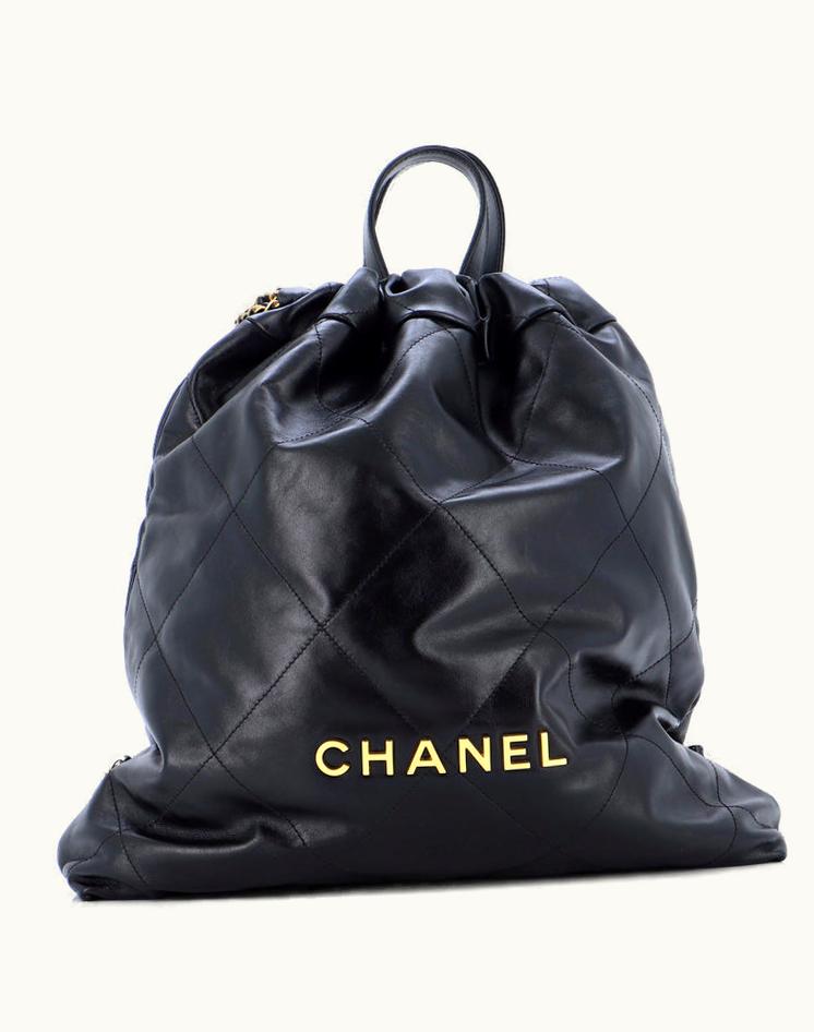 Chanel 22 Chain Backpack Quilted Calfskin Large Black Luxury Bag | GLINT