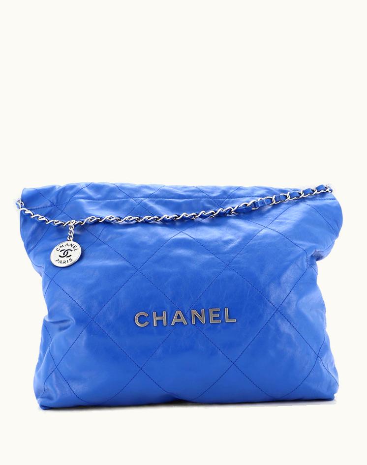 Chanel 22 Chain Hobo Quilted Calfskin Medium Luxury Shoulder Bag Blue | GLINT