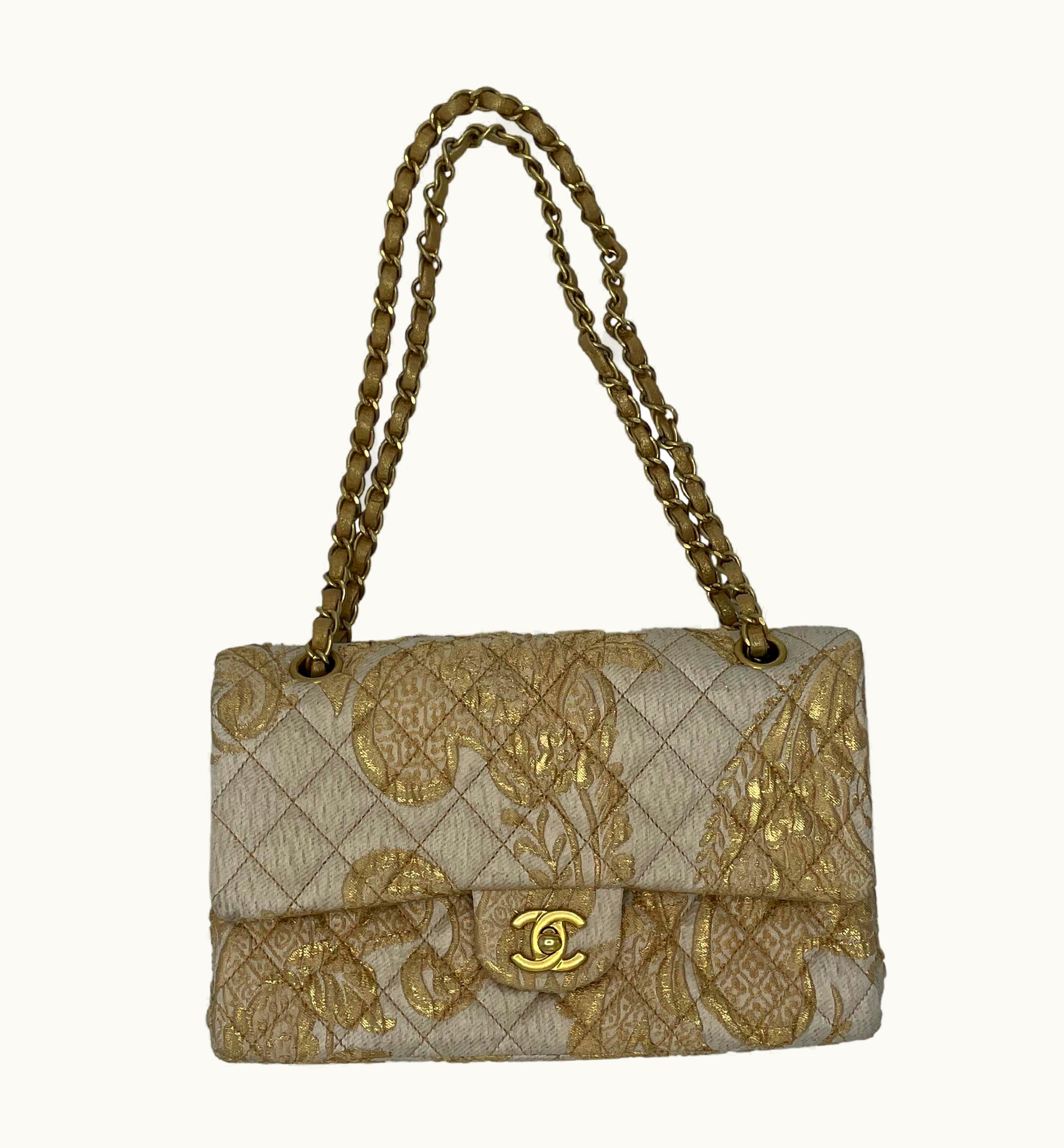 Chanel 2.55 Medium Flap Bag Gold Canvas | GLINT