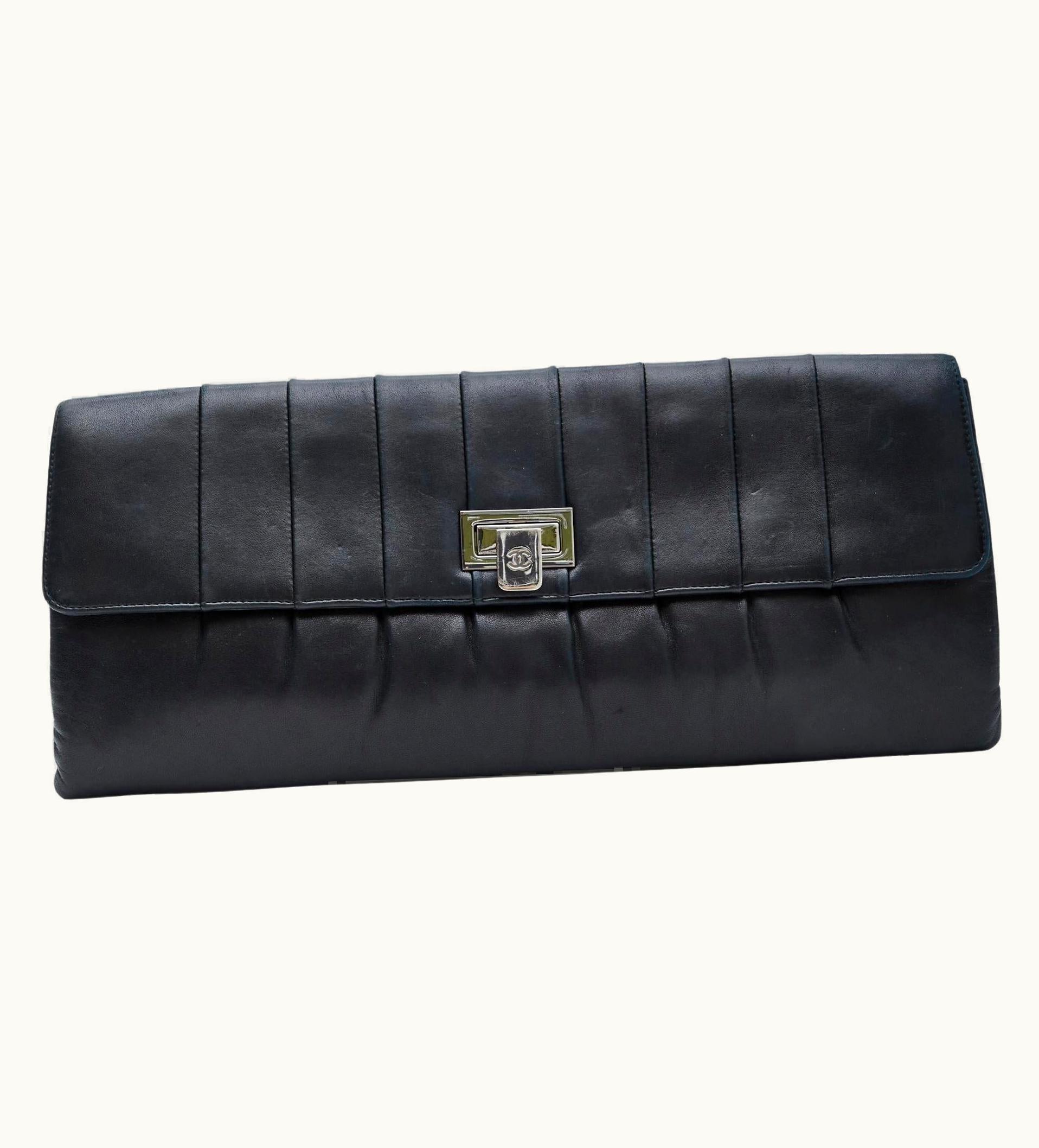 Chanel Black Lambskin Clutch 2002 Fold Clasp | GLINT