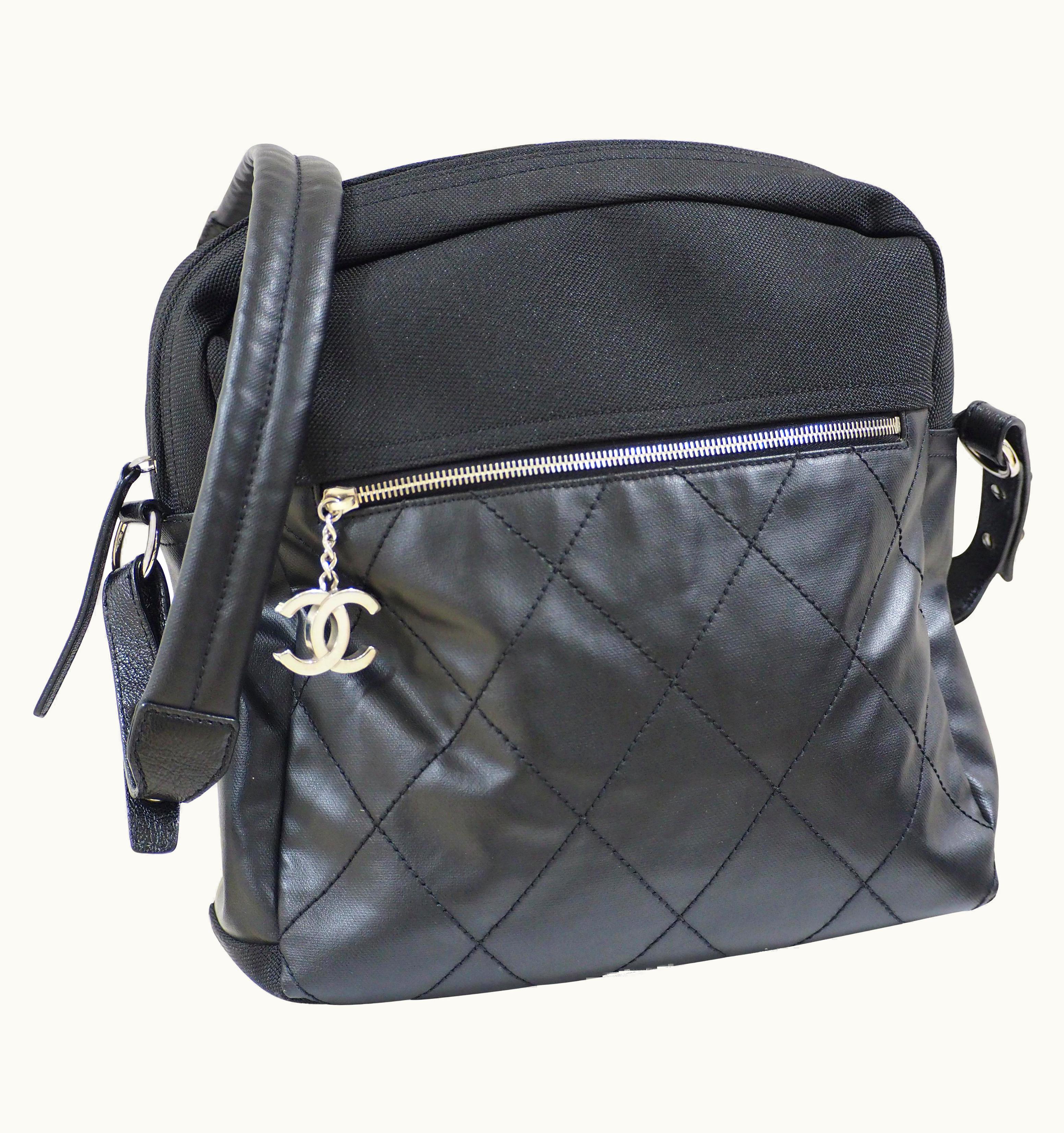 Chanel Black Leather Textile Shoulder Bag S/S Backpack | GLINT