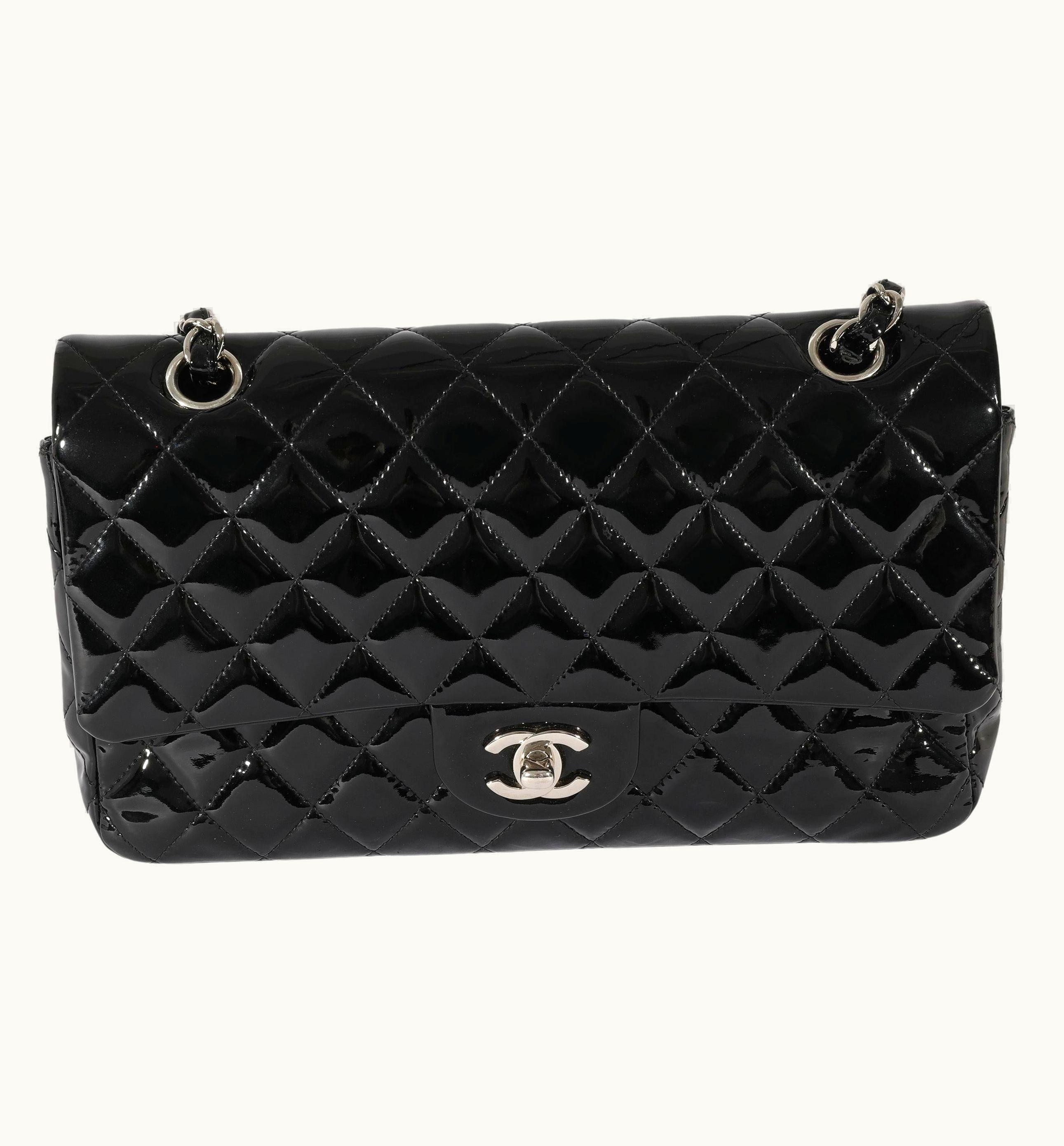Chanel Black Patent Medium Classic Flap Bag UZ0591074 | GLINT