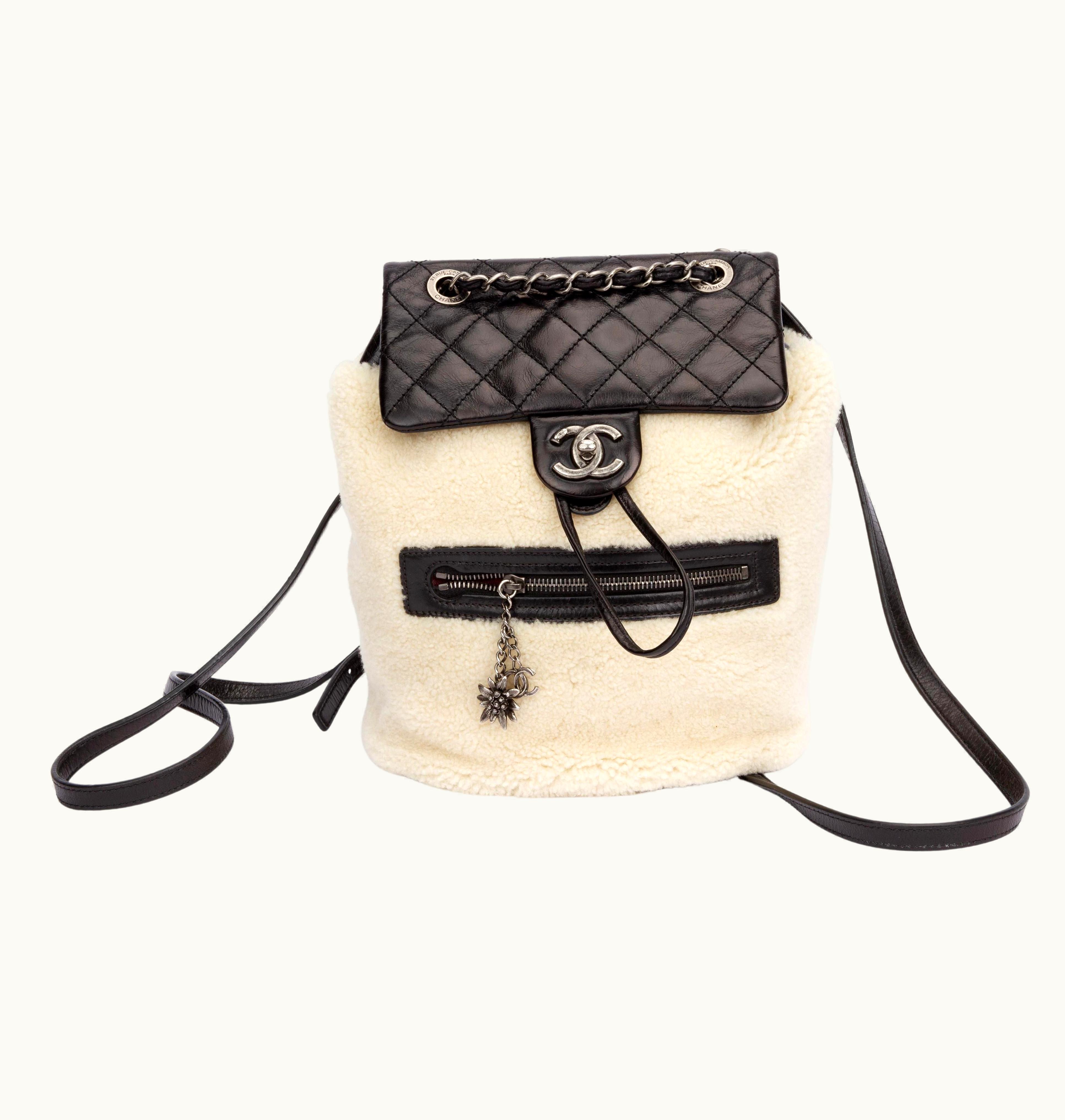 Chanel Black Shearling Mint Backpack | GLINT