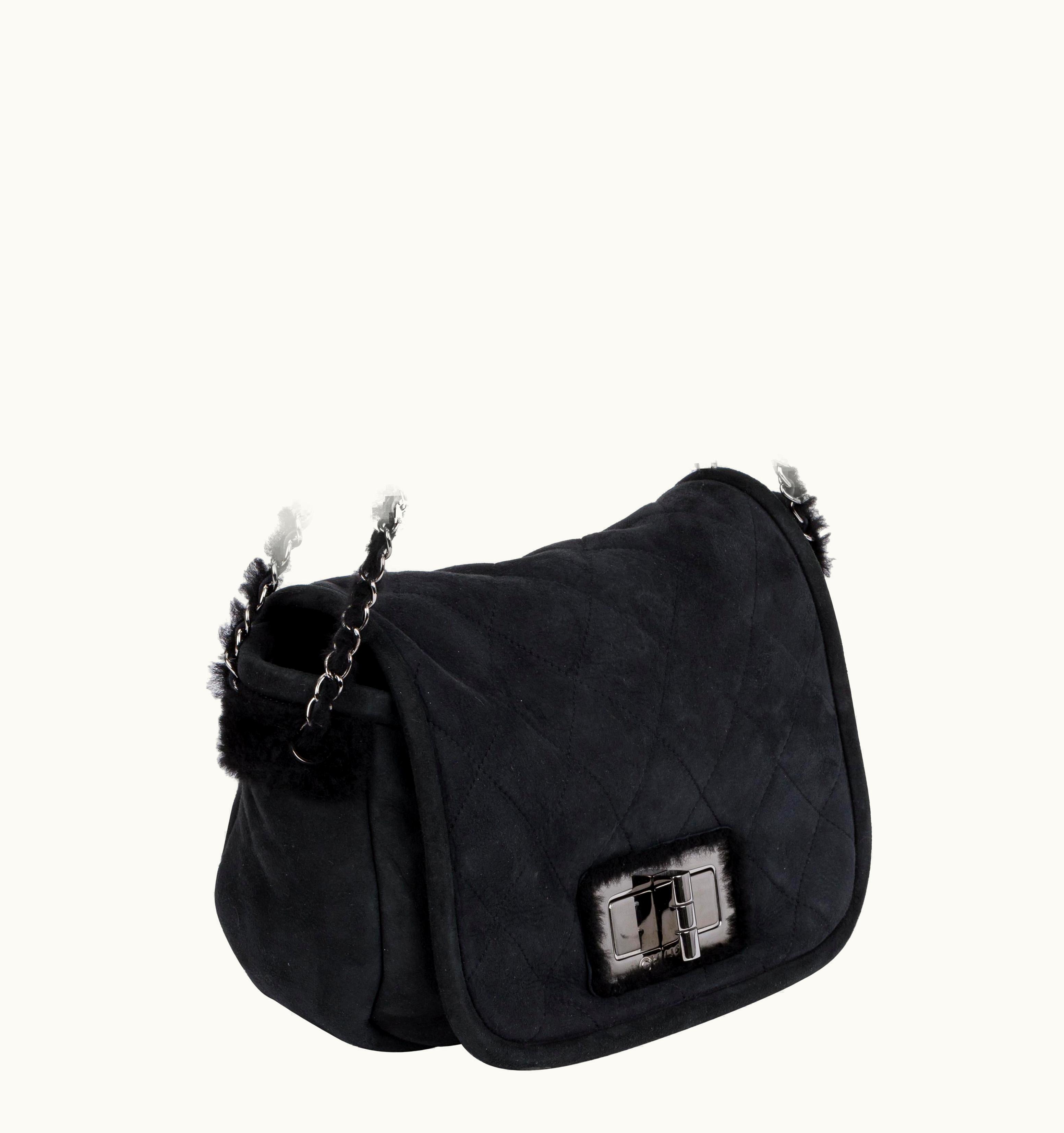 Chanel Black Shearling Suede Shoulder Bag | GLINT