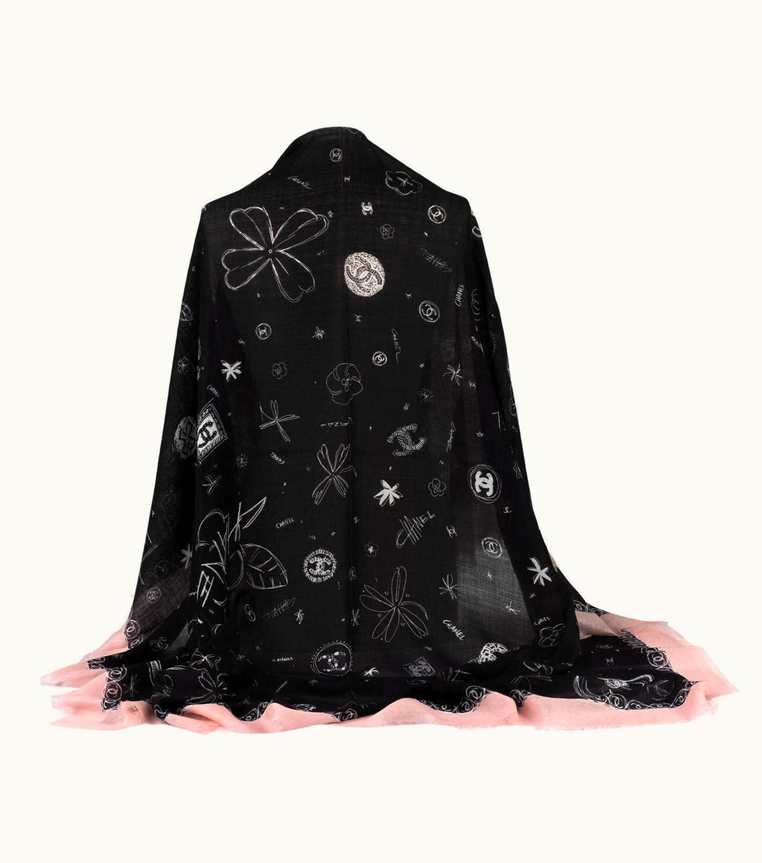 Chanel Black S/S Pink Cashmere Shawl | GLINT