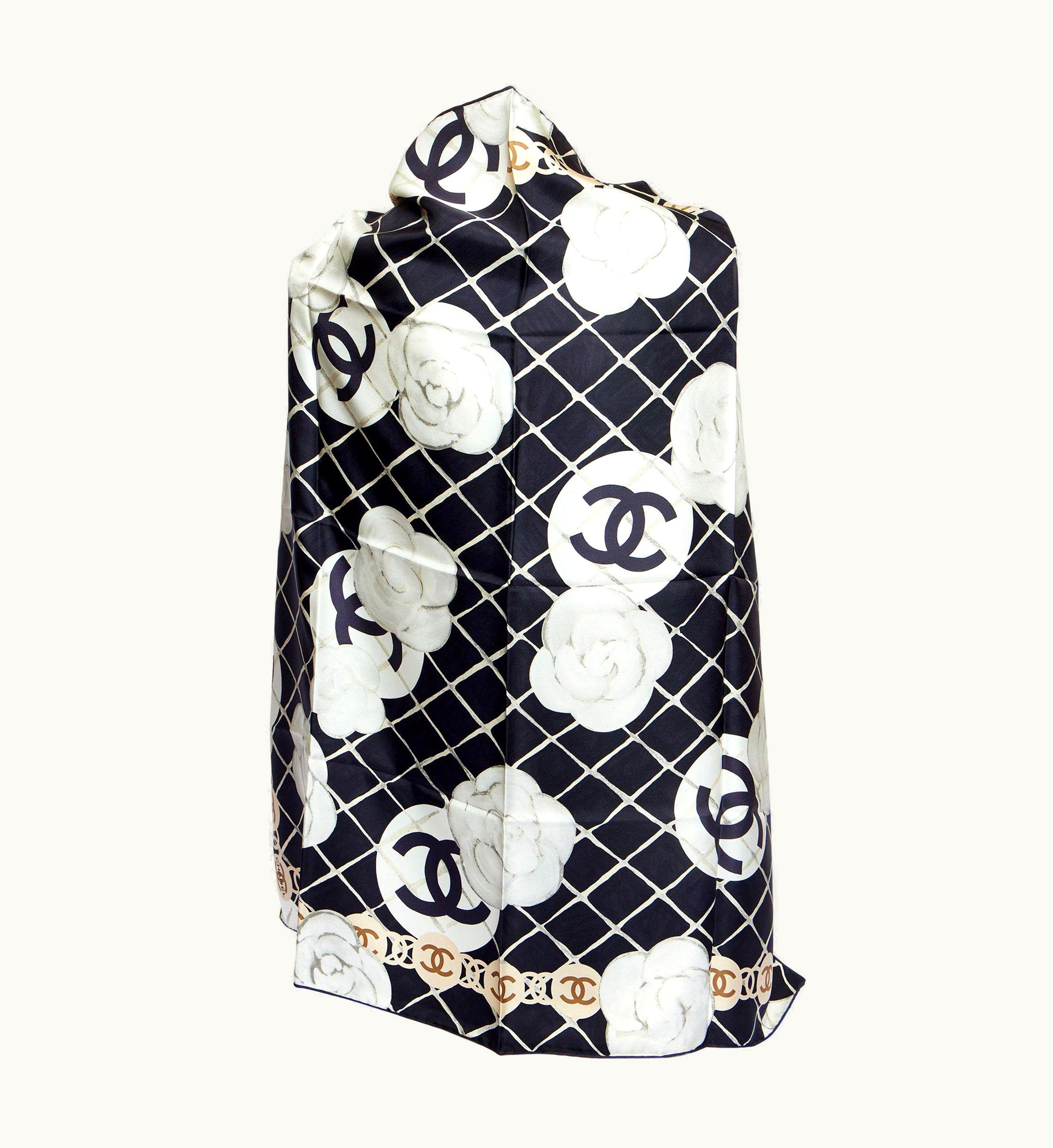 Chanel Black/White Camelia Silk Shawl | GLINT