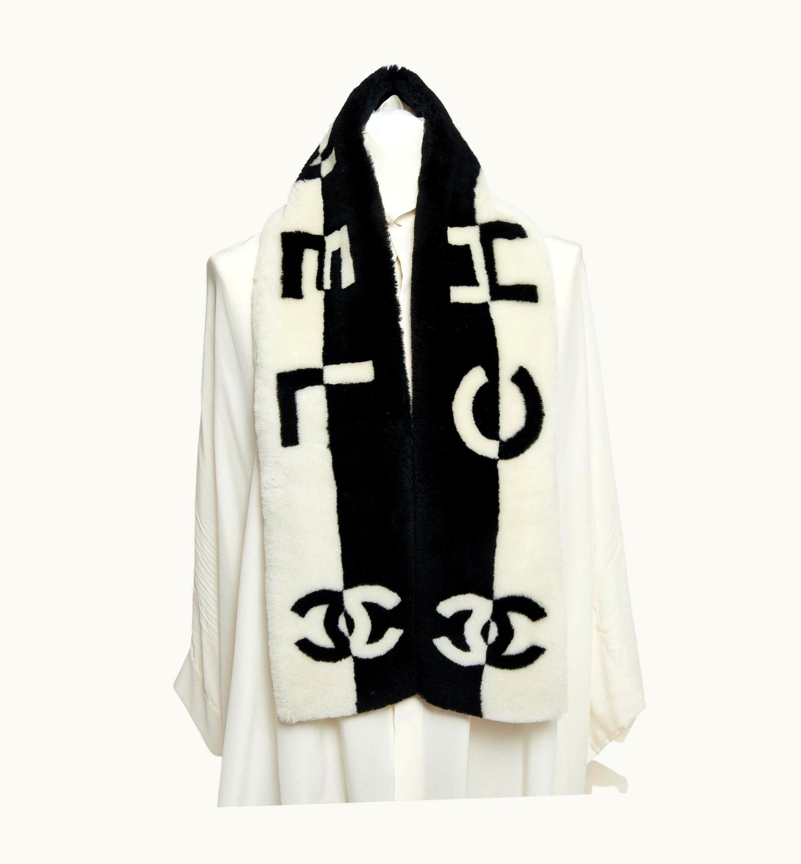 Chanel Black/White Sheepskin Scarf | GLINT