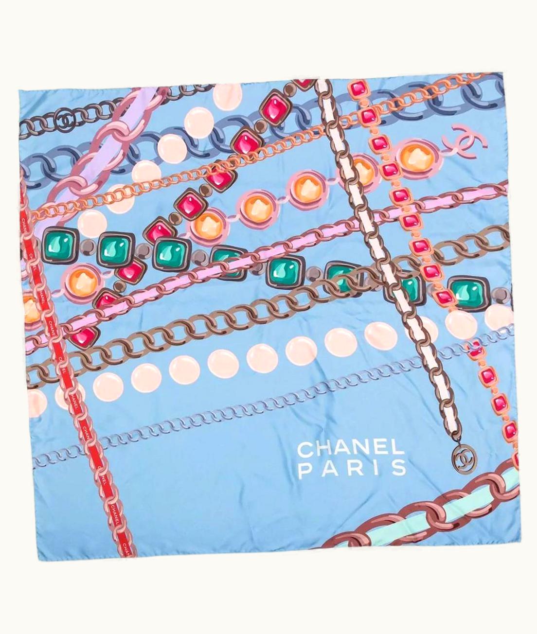 Chanel Blue Chain Motif Silk Scarf | GLINT