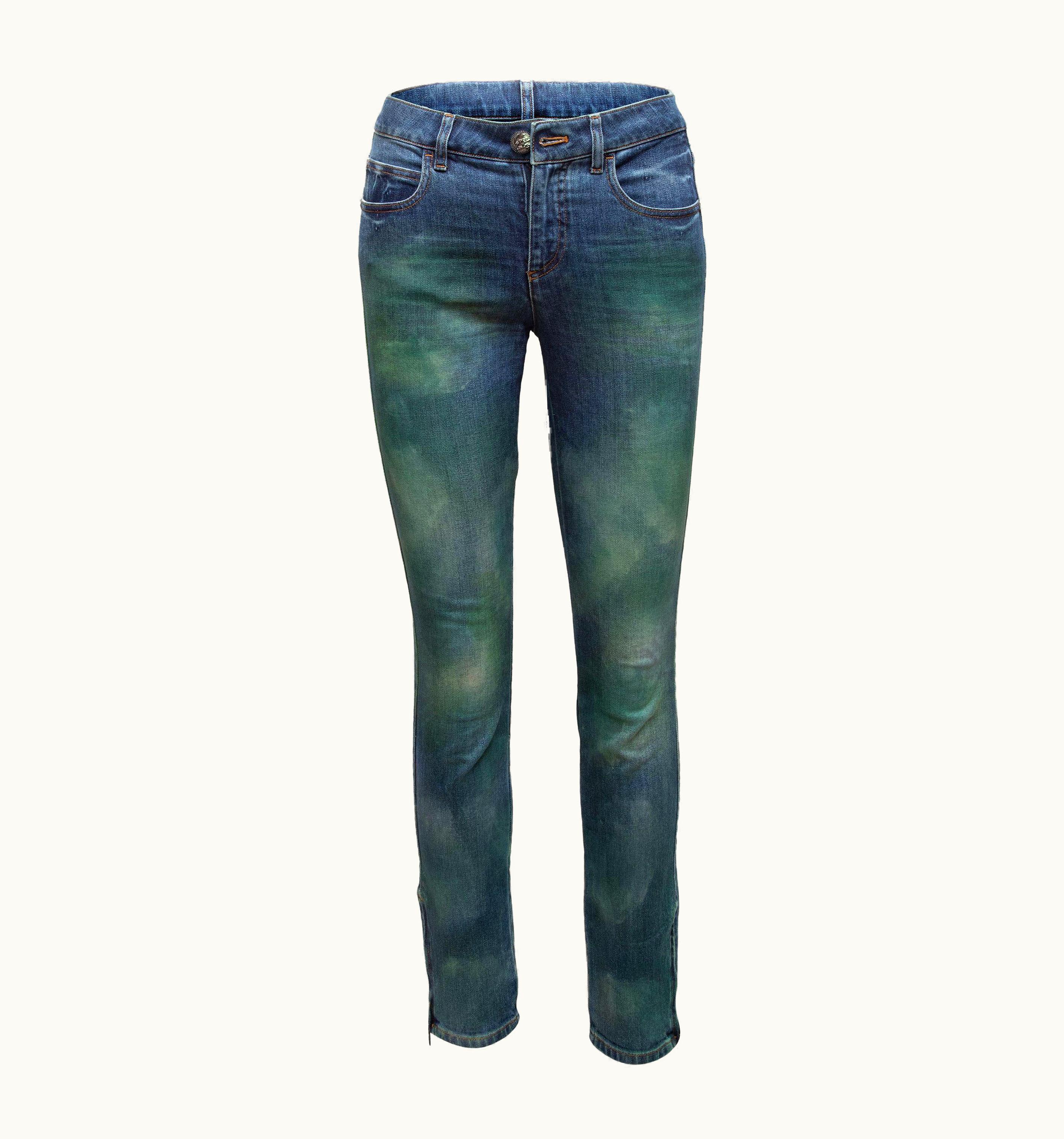 Chanel Blue Green Wash Skinny Jeans | GLINT
