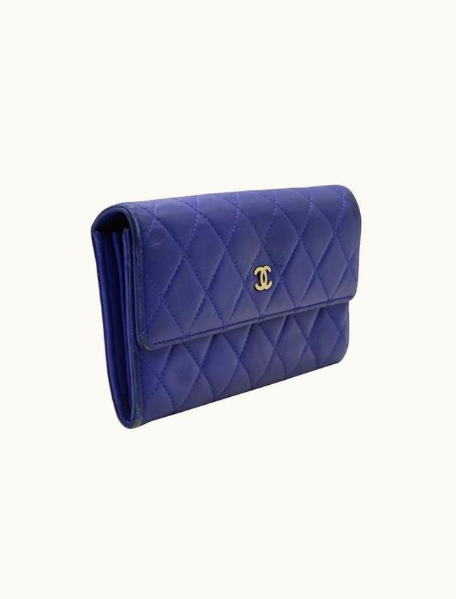Chanel Blue Quilted Caviar Leather Wallet | GLINT