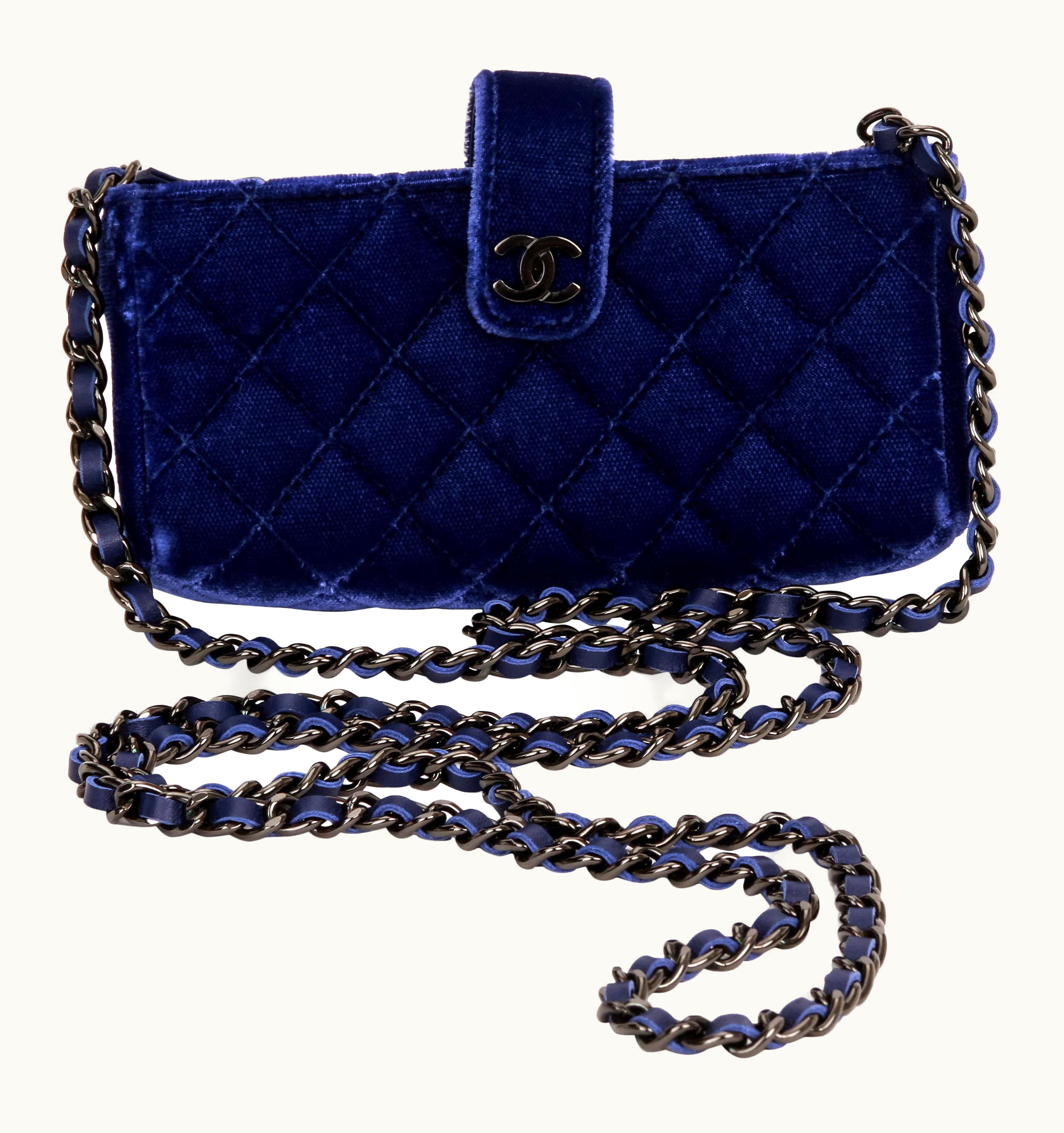 Chanel Blue Velvet Mini Crossbody Bag | GLINT