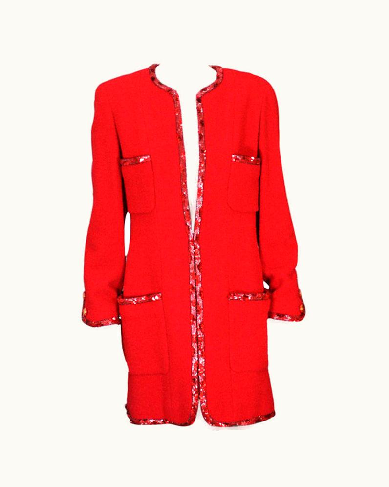 Chanel Boucle Elongated Jacket With Beaded Trim | GLINT