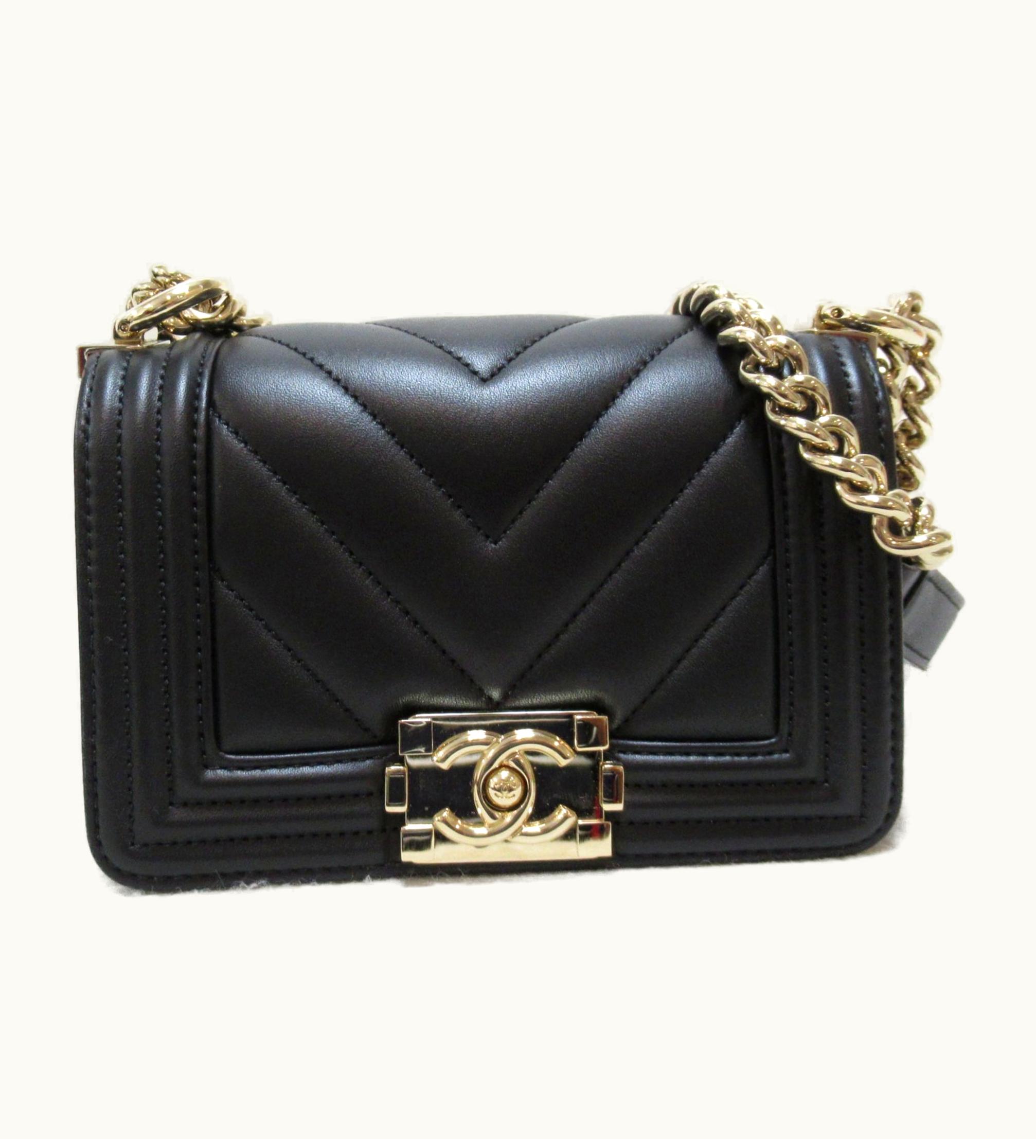 Chanel Boy Compact Leather Chain Shoulder Bag Black | GLINT