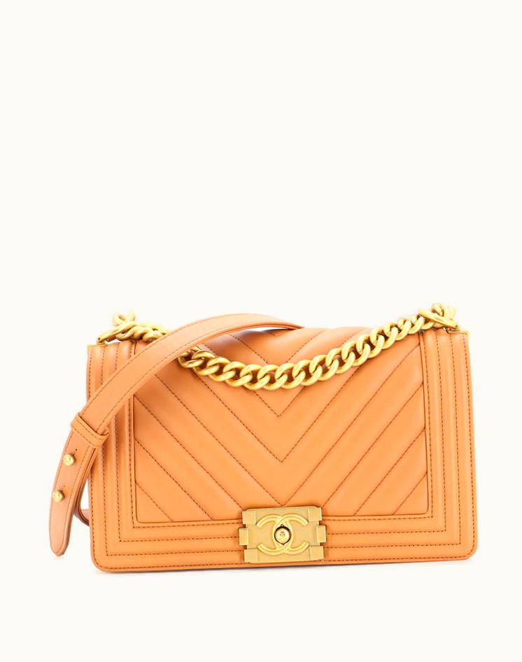 Chanel Boy Flap Bag Chevron Calfskin Old Medium | GLINT