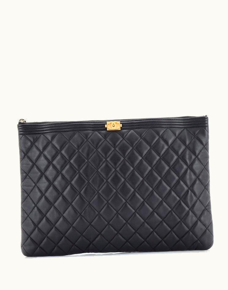 Chanel Boy O Case Clutch Quilted Lambskin Large | GLINT