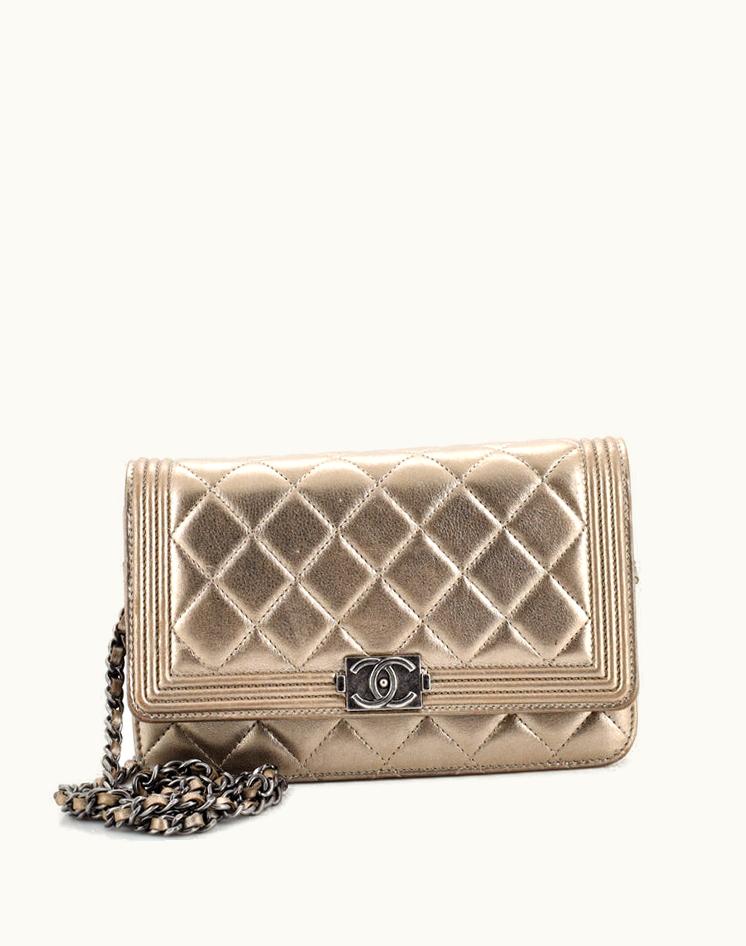 Chanel Boy Wallet On Chain Quilted Lambskin Gold Aged Silver | GLINT
