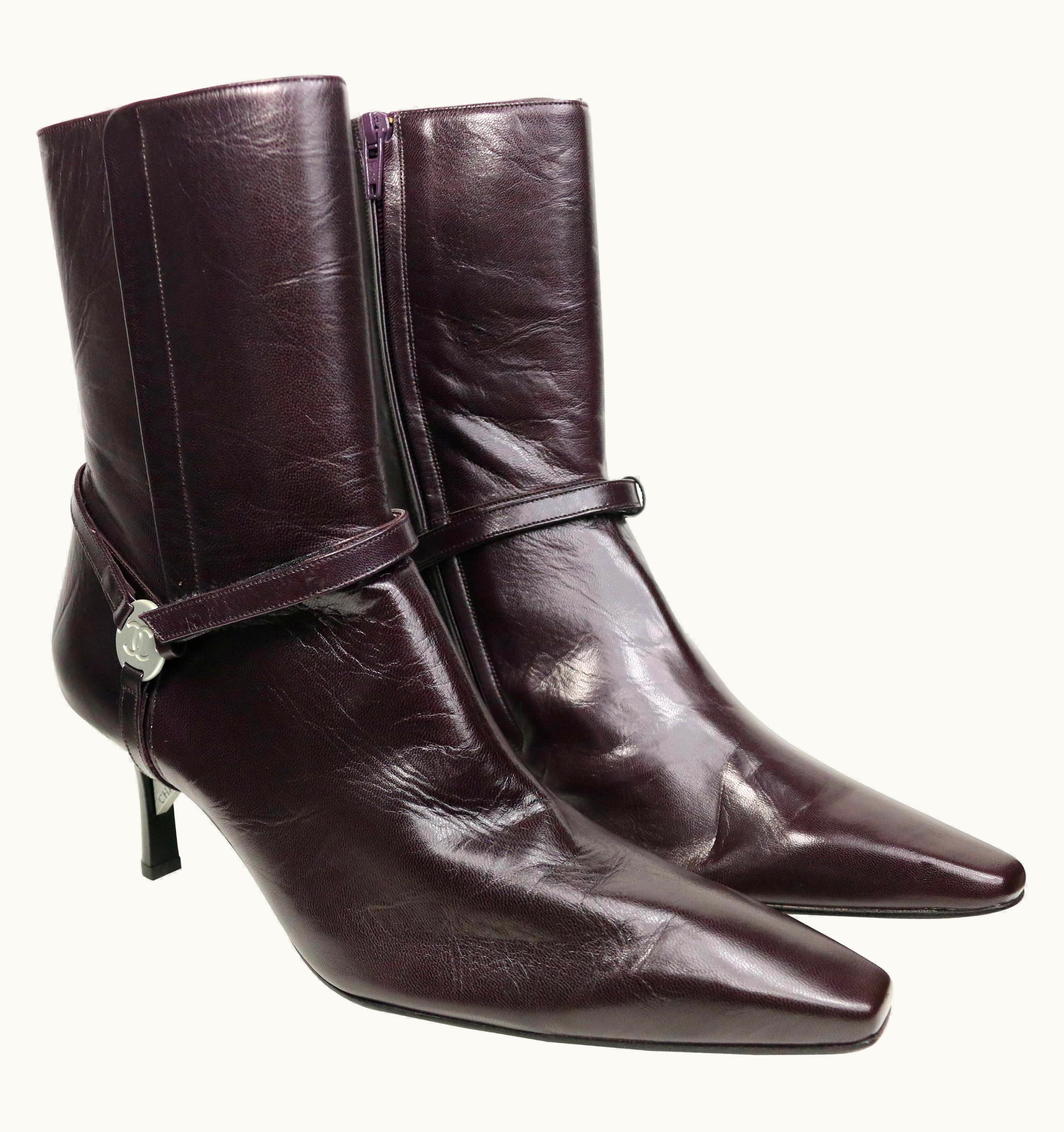 Chanel Burgundy Leather Ankle Boots | GLINT