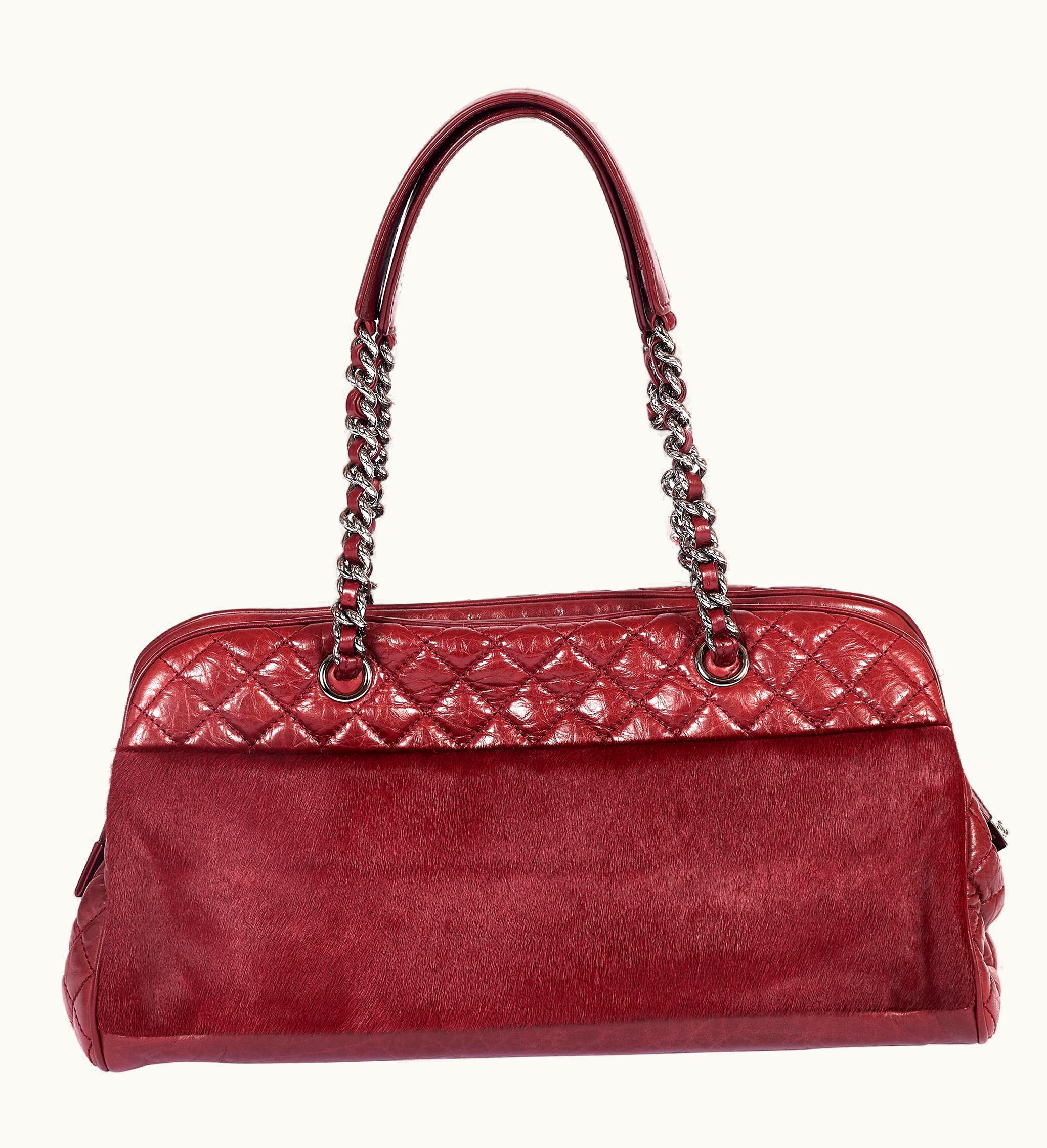 Chanel Burgundy Pony Hair Zipped Tote | GLINT