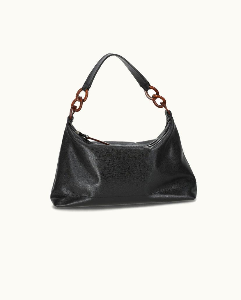Chanel Caviar CC Wood Chain Shoulder Bag Black | GLINT