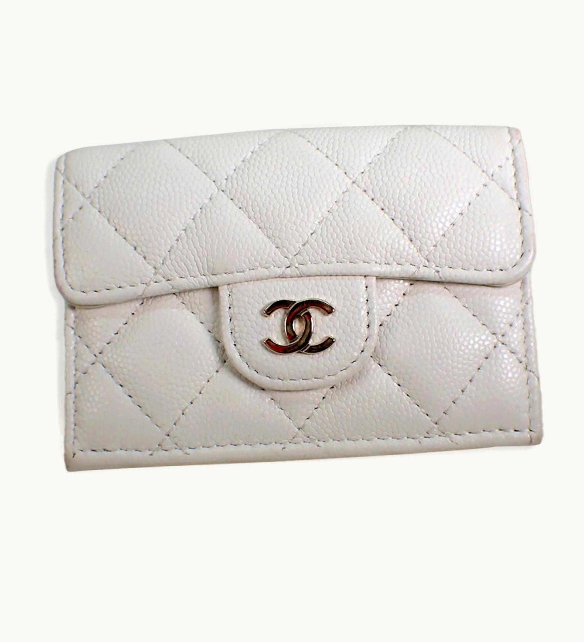 Chanel Caviar Skin White Trifold Wallet | GLINT