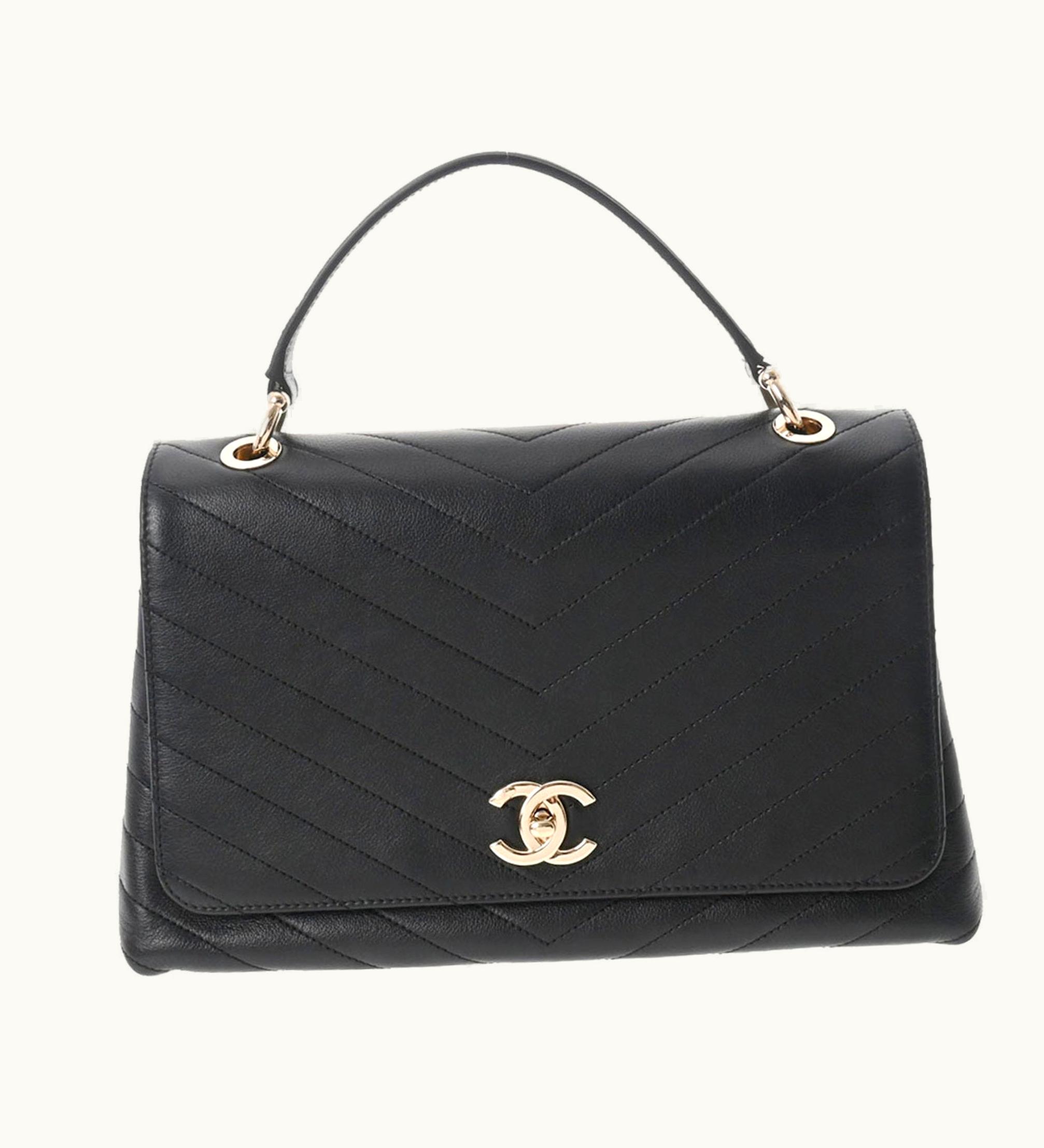 Chanel Chevron Black Ladies Calf Handbag | GLINT